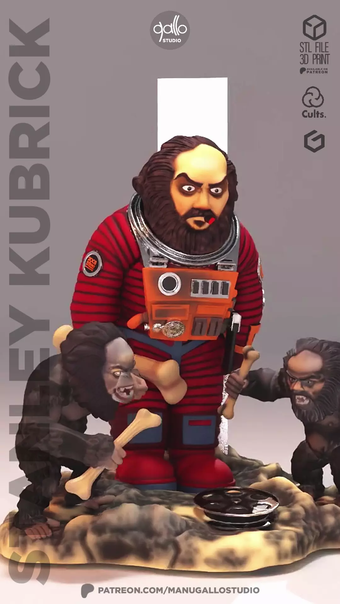 Sculpture inspired by the masterpiece of science fiction. The piece captures Kubrick's unique vision, gathering the astronaut and the iconic apes against the mysterious monolith. Designed for collectors and lovers of classic cinema,This tribute is ideal for 3D printing or as an exhibition piece.
