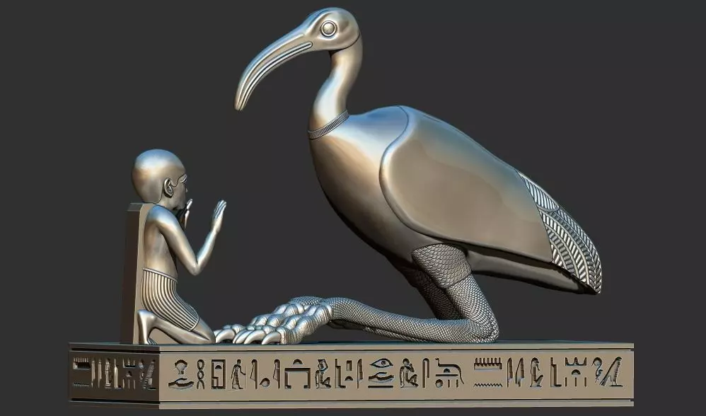 Statue of Thoth as Ibis with a Priest 3d printable model 3D print model