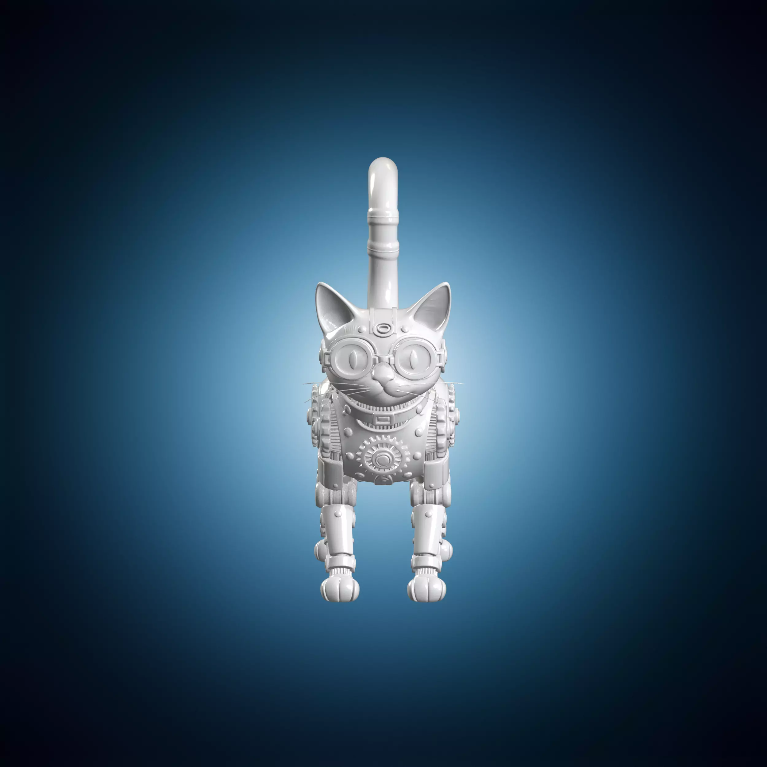 Gear up for adventure with this Steampunk Brass Cat Mechanical 3D print model. This inventive design reimagines a sitting cat as a Victorian-era mechanical automaton. The body is constructed from interlocking brass plates. exposed gears. riveted joints. and steam pipes that combine to form a recognizable but entirely mechanical feline figure. Every surface tells a story of clockwork engineering and industrial craftsmanship. The head features large goggle-like eyes with adjustable lens frames and tiny screws at the temples. The ears are constructed from folded metal plates with small antenna-like protrusions at the tips. The torso is an open framework that reveals the internal gear mechanisms. with a large central cog serving as the heart of the machine. Piston-driven legs connect to the body through ball-joint style connections. The tail is a flexible segmented cable that curves gracefully behind. This model is essential for steampunk enthusiasts. mechanical art lovers. and cat fans. It works as a striking display piece for offices. studios. and themed rooms. The Victorian industrial aesthetic pairs beautifully with vintage decor. antique collections. and retro-futuristic interiors. It makes an excellent gift for engineers. makers. and tinkerers. Cosplay enthusiasts and steampunk event organizers will also appreciate it as a themed decoration. For 3D printing. a layer height of 0.1 to 0.16 mm is recommended for the fine gear teeth and mechanical details. Use 15 to 20 percent infill. Minimal supports are needed due to the sitting pose. Post-print painting in bronze. copper. and brass tones with weathering effects produces the most authentic steampunk appearance. Resin printing captures the finest gear and rivet details. At full scale the model stands approximately 12 cm tall. Files are provided in OBJ. STL. and PLY formats for seamless compatibility with all printing platforms. Please Note: This STL file may require pre-printing preparation such as support analysis and positioning adjustments. Thickness verification and specific settings for your printer and filament may be needed. Other technical adjustments might be necessary depending on your equipment and printing method.