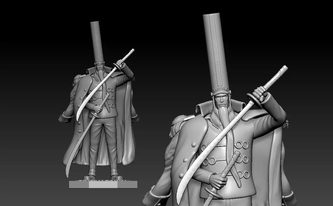 Vice Admiral Strawberry is a Marine officer, and one of the five vice admirals who led the Buster Call assault on Enies Lobby.Strawberry is a relatively straight shaped person with a long beard. He is usually seen with his eyes closed, or at least half-closed. He wears a very long bearskin version of the standard Marine uniform cap due to his head being abnormally long.[6] Like many high-ranking Marines, he has a standard Marine's coat draped on his shoulders like a cape. Under it, and over a shirt left unbuttoned near the neck, he wears a water-green jacket, with pale yellow rope-like ornaments on the chest, and matching pants.