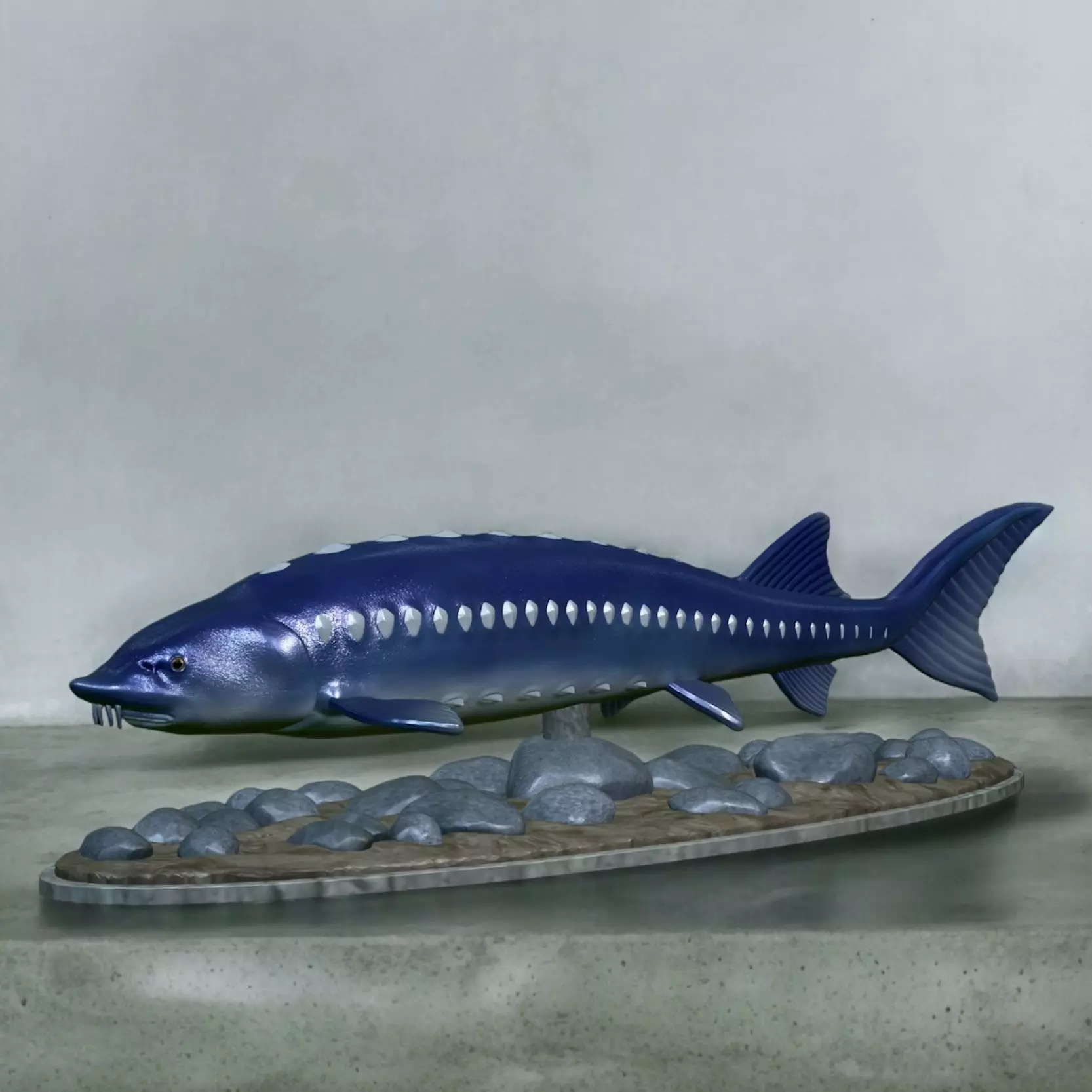 sturgeon vyza fish underwater statue detailed texture 3D print model