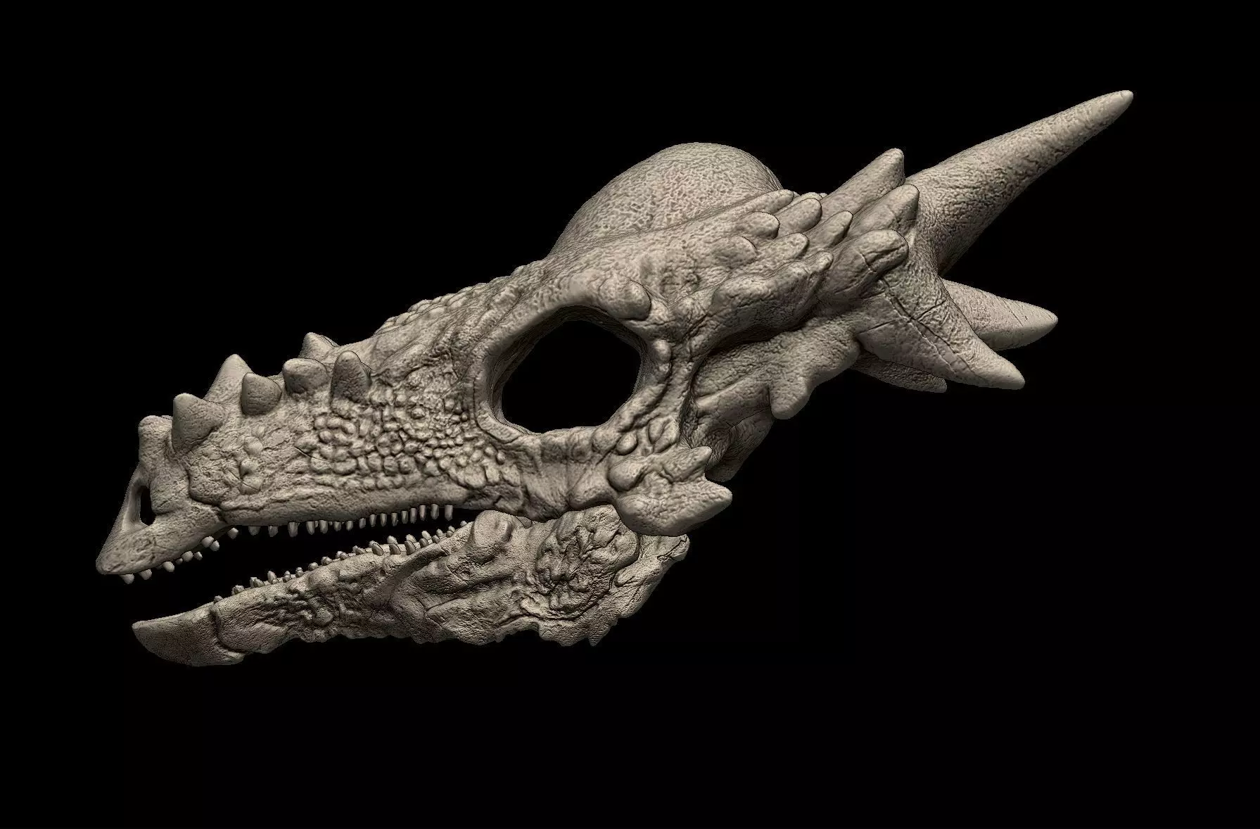 This is a life size 3d digital model skull of a Stygimoloch OBJ, ZTL, PLY, FBX and STL files. jaw is seperated.
