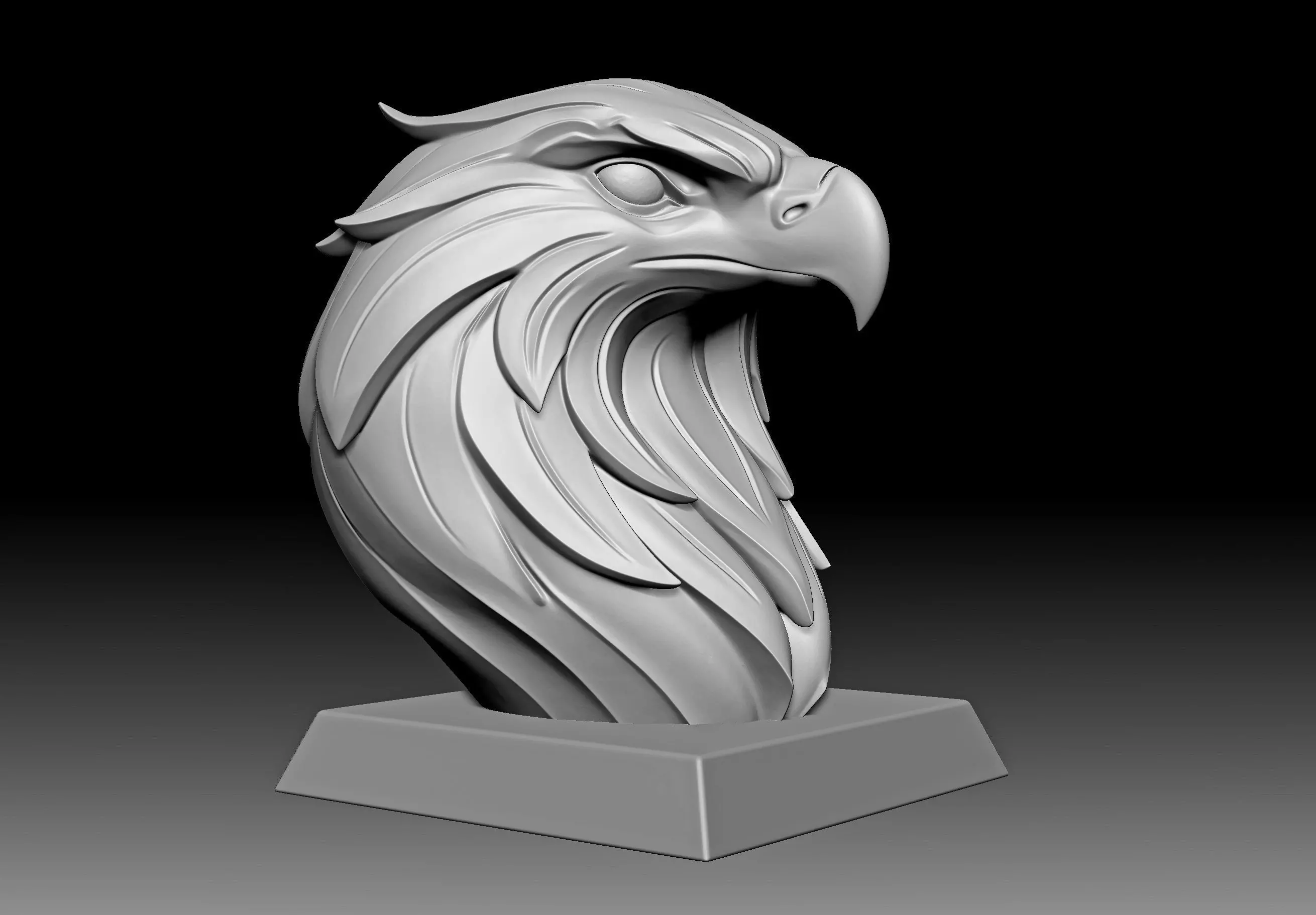 This stylized eagle head bust is a high-detail sculpt created in 3ds Max and ZBrush, designed specifically for 3D printing and decorative display.
