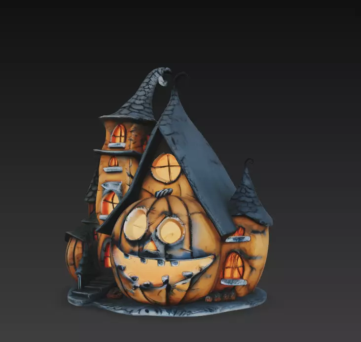 Step into the spooky charm of Halloween with this Stylized Pumpkin Haunted House 3D Model.The design merges whimsical pumpkin forms with eerie gothic architecture — featuring crooked roofs, glowing windows, and haunted personality in every curve.Perfect for seasonal art, 3D prints, dioramas, or CGI environments, this sculpt embodies a blend of fantasy and playful horror.