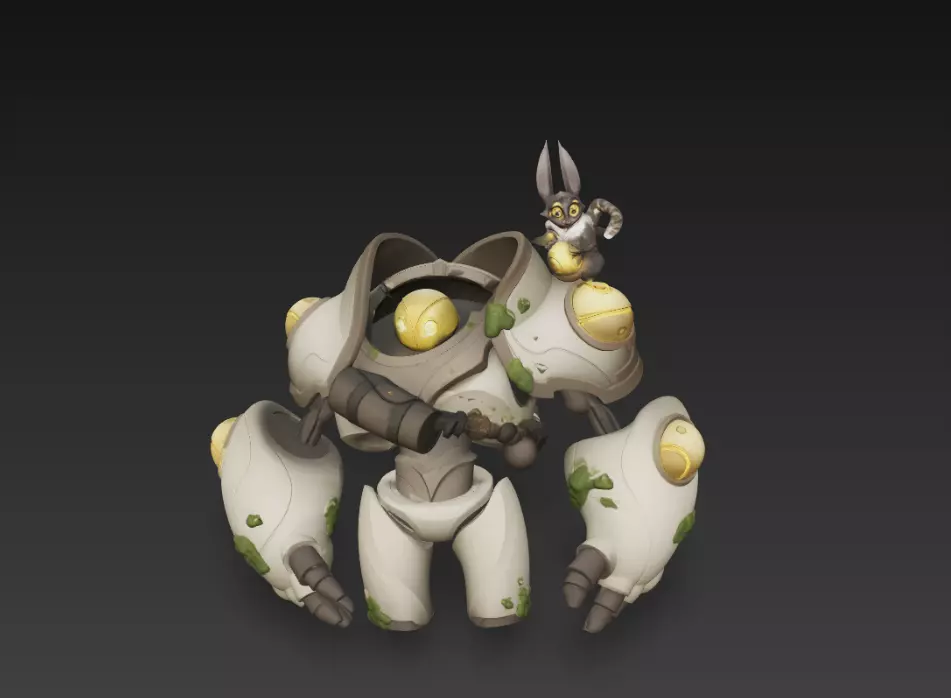 The model presents a compact mech robot with rounded mechanical armor, glowing mechanical elements, and a small companion creature sitting on top of the robot. The combination of mechanical design and cute character styling gives the model a unique personality.