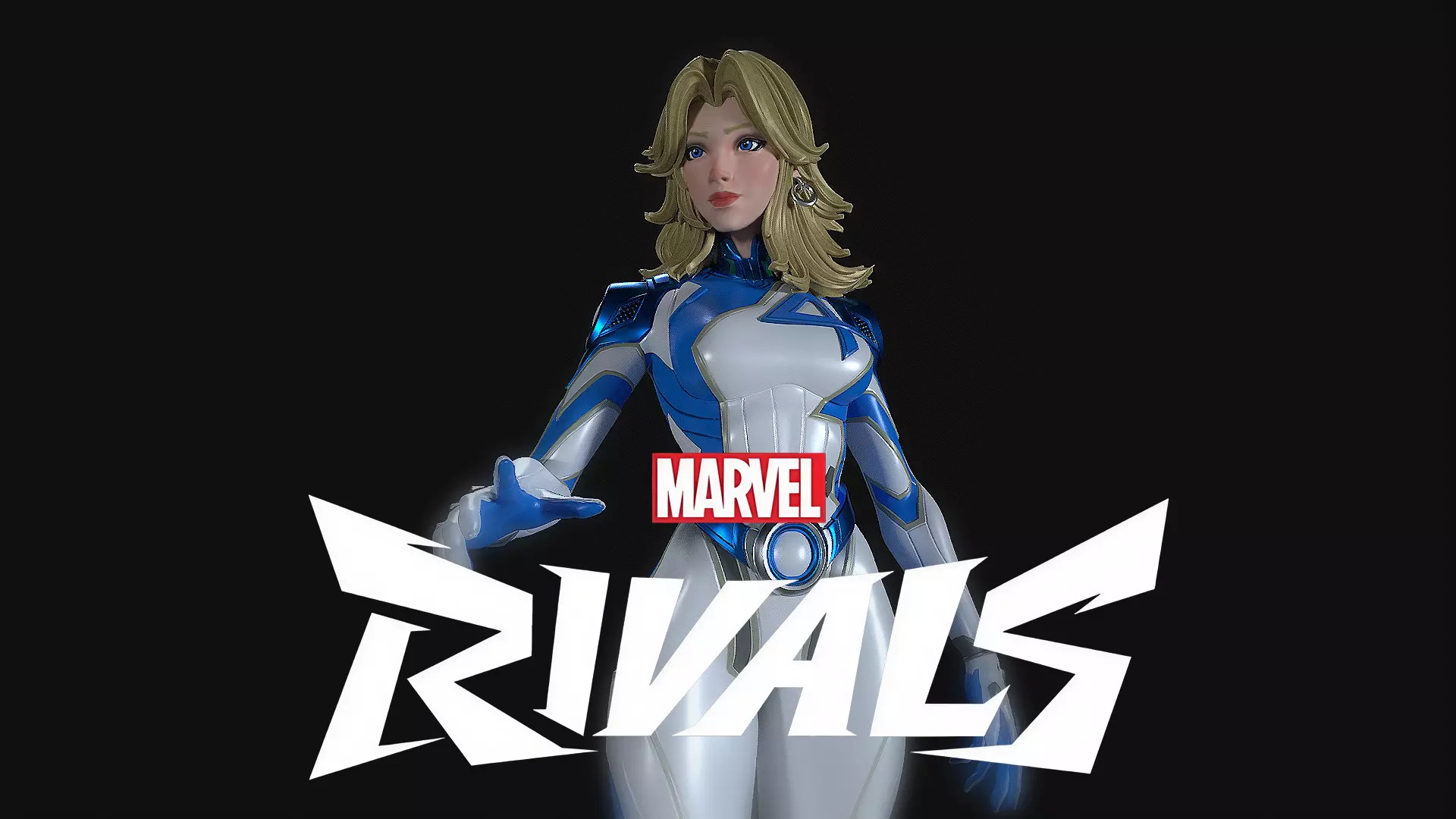 3D printable statue depicting Sue Storm, Invisible Woman, from Marvel Rivals.