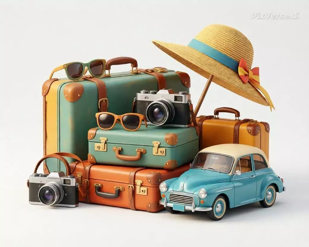 This AI generated non movable three dimensional printable model represents summer vacations, traveling, and tour themes in a cute and beautiful decorative style. The design features smooth surfaces, vivid colors, and vintage inspired details that are motivating and uplifting.