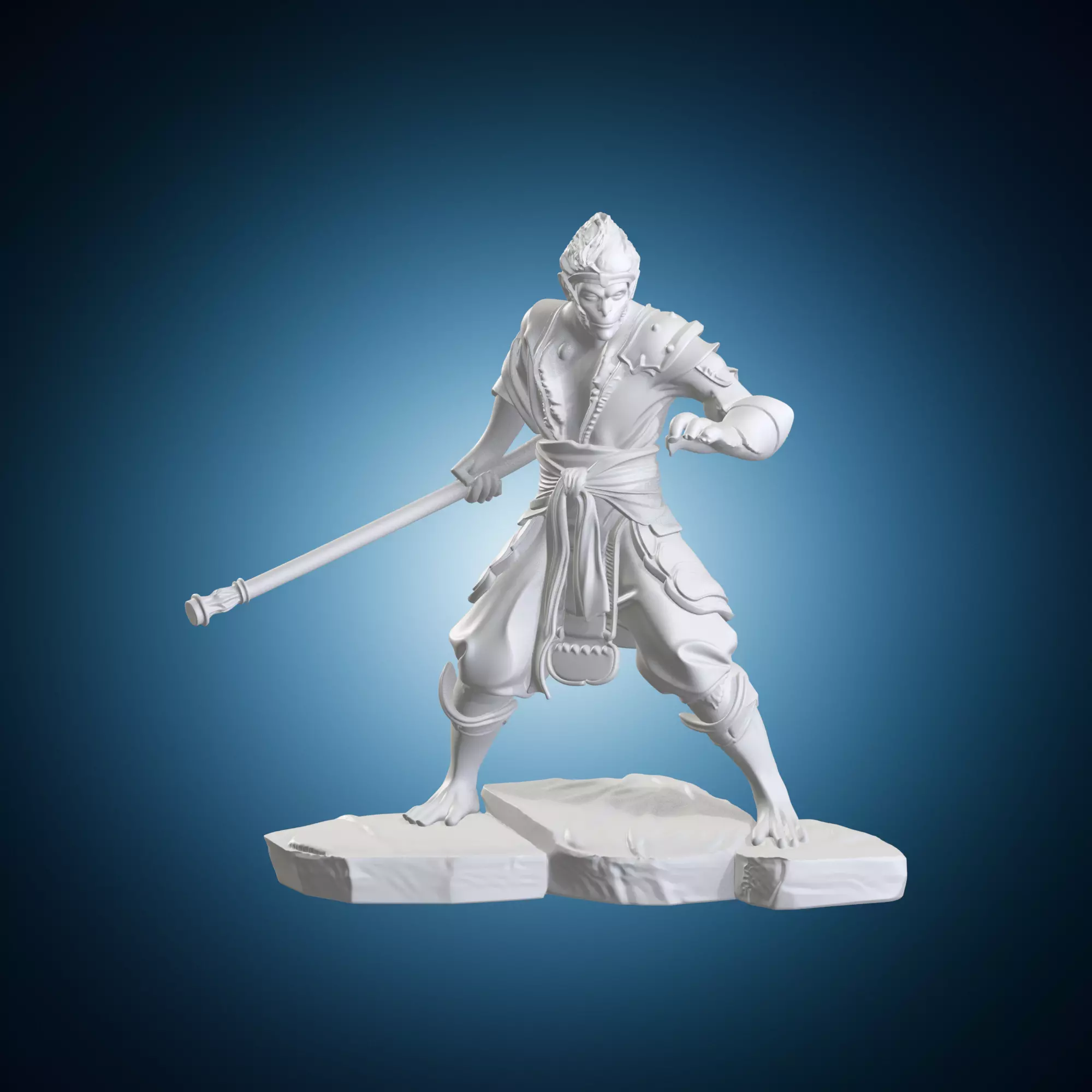A 3D model of Sun Wukong the Monkey King from the classic Chinese novel Journey to the West. This detailed model is based on traditional Chinese art and culture, capturing the iconic character's mischievous personality. The model features intricate details such as Sun Wukong's staff and clothing, making it perfect for artists, animators, and fans of Chinese mythology. The 3D model can be used in various applications including video games, films, and animations, or as a decorative piece for personal use.