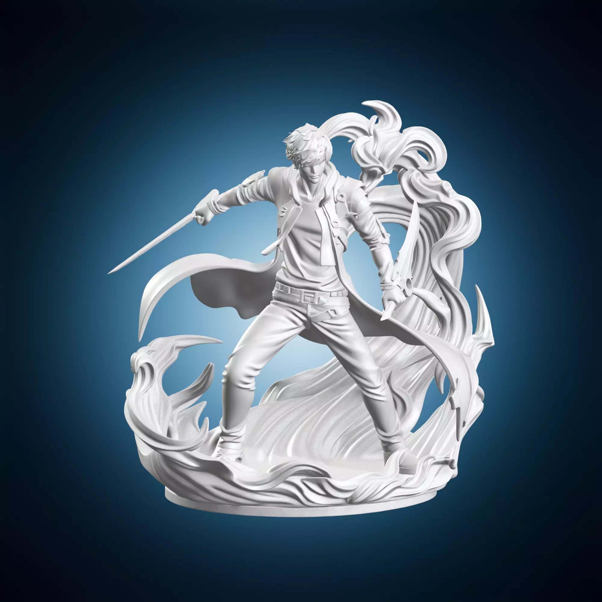 A detailed and realistic 3D model of Sung Jin Woo from the popular anime series Solo Leveling. The statue is a solo-leveling level artwork, highlighting the main character's majesty. It features intricate details and textures that capture the essence of the anime. This 3D model can be used for various purposes such as animation, game development, or simply for personal display. The statue is depicted in a regal pose, showcasing its grandeur. Perfect for fans of Solo Leveling and anime statues.