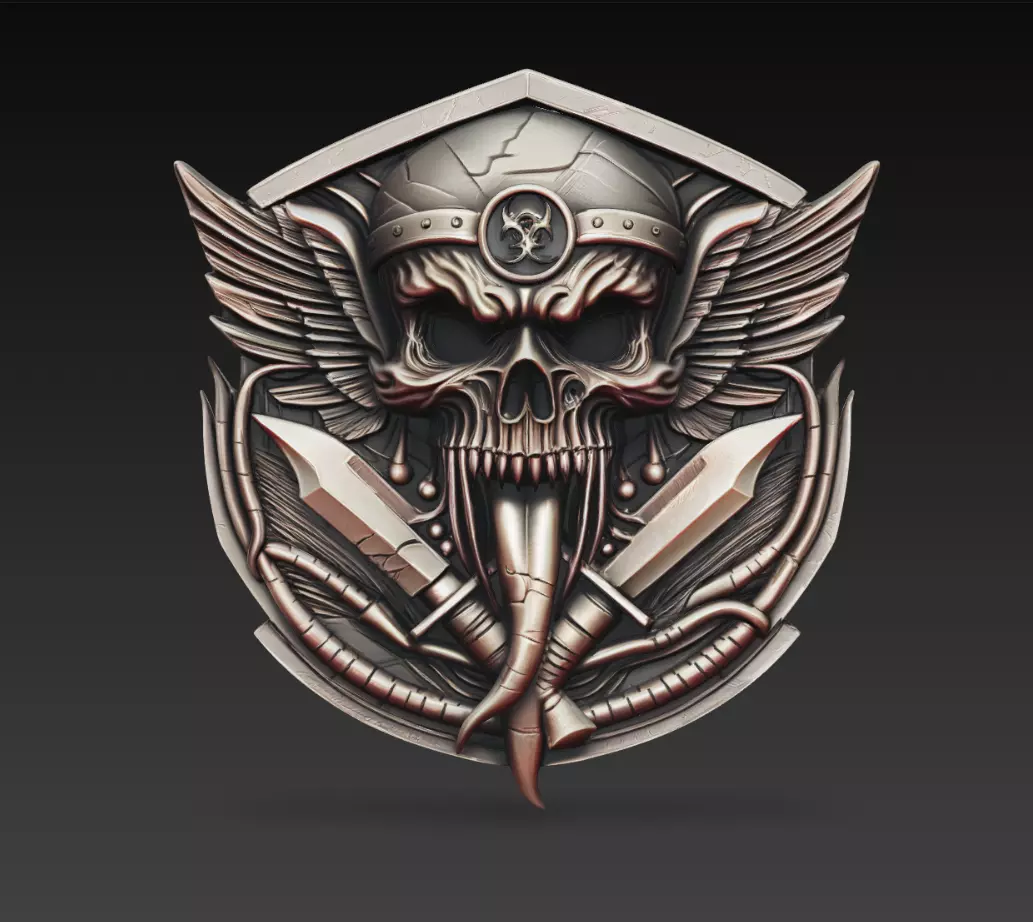 • Military & tactical designs• Game assets & faction emblems• Badge & insignia concepts• Decorative medallions & reliefs• 3D printing (collector items)• Tactical & combat-themed artwork• Tattoo-inspired designs• Industrial & modern war aesthetics