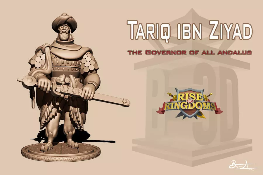 - High-quality 3D model of -Tariq ibn Ziyad- the Governor of all andalus from Rise of kingdoms game.-The figure was sculpted using ZBrush and modeled using 3ds max with fully detailed.-3d printable stl Size set to 20cm height.