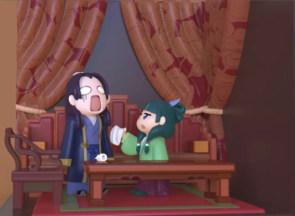 Maomao: The main protagonist. She is the daughter of a courtesan and a military officer; however, due to her parents' situation at the time, they did not raise her. She was adopted by her great-uncle Luomen, who taught her about herbs and disease management. She used to work as an apothecary in a small village until one day she was kidnapped and sold to Rii's Inner Palace, where she began working as a court lady. There, she was able to use her keen sense of practicality and insightful knowledge of herbs and illnesses to solve the mysterious problems within the inner court.