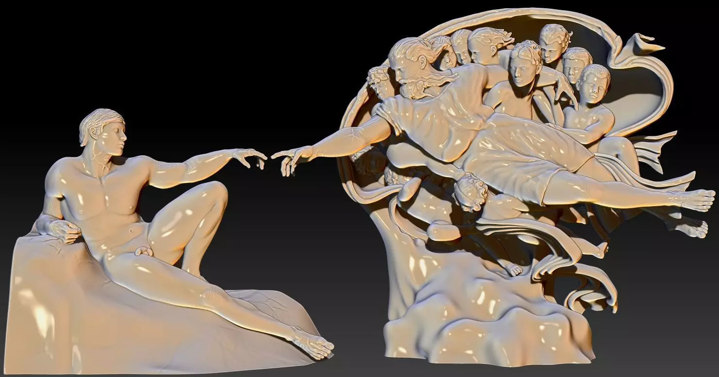 The Creation of Adam is a fresco painting by Italian artist Michelangelo, which forms part of the Sistine Chapel's ceiling, painted c. 1508–1512. It illustrates the Biblical creation narrative from the Book of Genesis in which God gives life to Adam, the first man.Object entirely in high resolution 3d, divided into 2 parts. Here are 4 files ready for download.