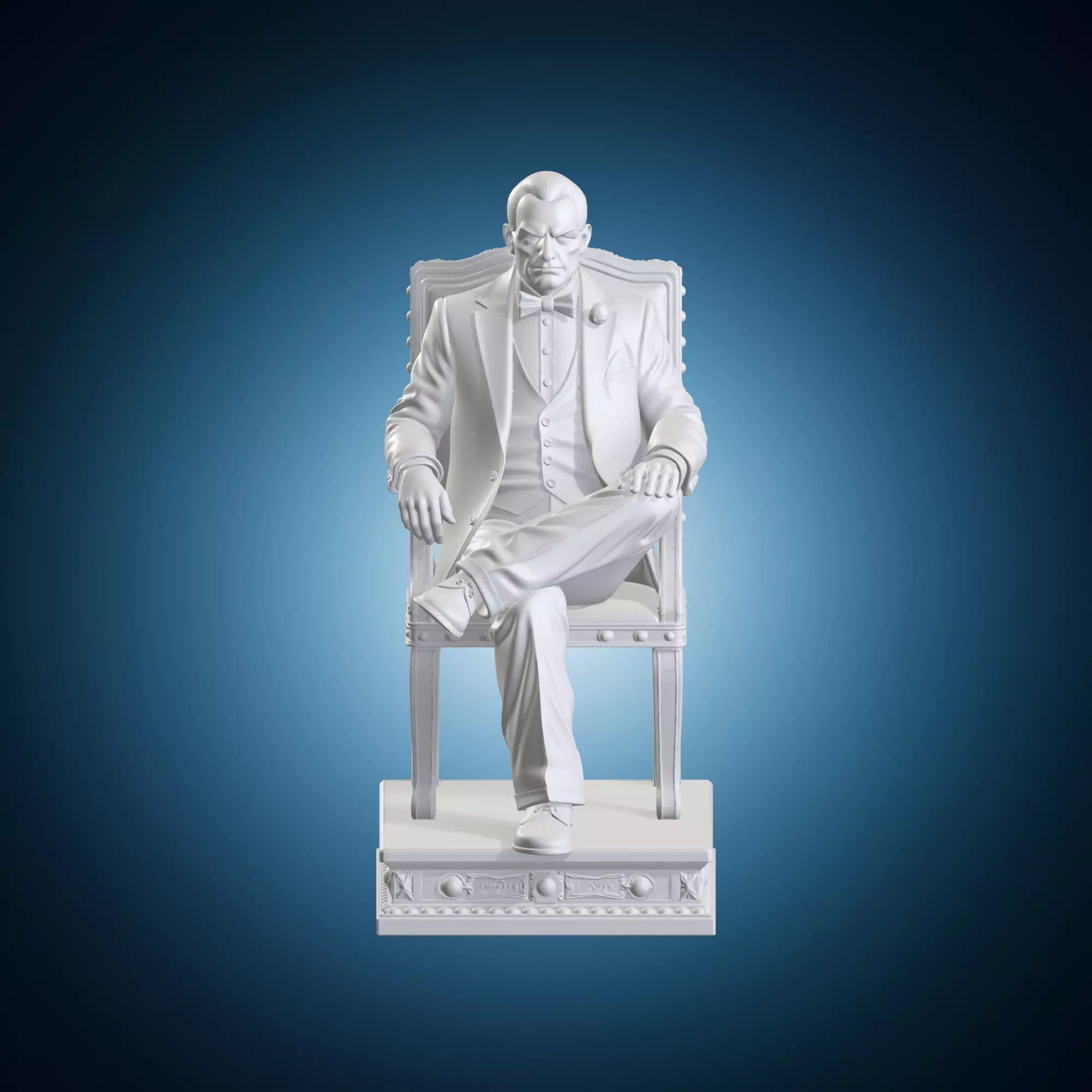 A detailed 3D model of Marlon Brando's iconic character from 'The Godfather' sitting in a chair. This model is highly detailed and realistic, capturing the character's expressions and body language. It can be used for film, television, or video game productions that require authentic props. The model includes various textures and materials to create an immersive experience. Suitable for 3D artists, designers, and filmmakers who want to add a touch of cinematic realism to their projects.