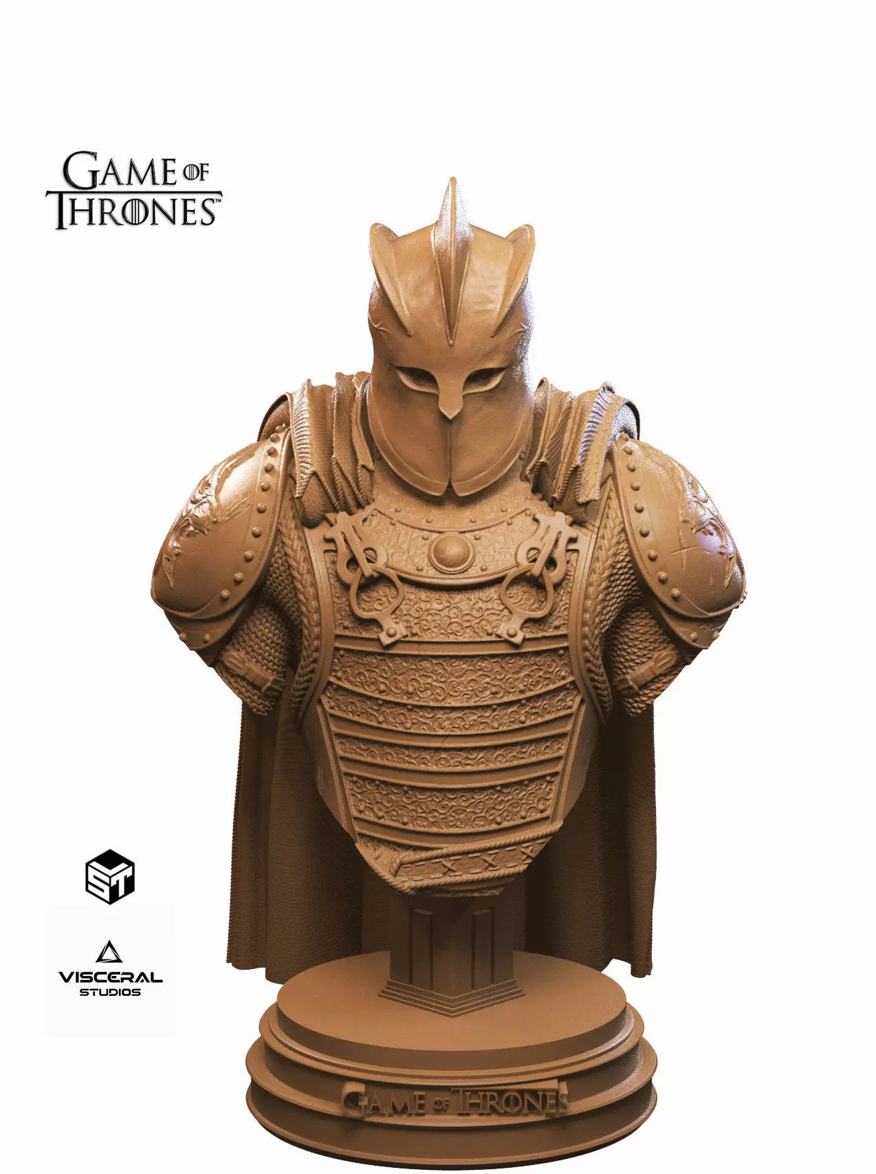 This sculpt captures the brutal presence of the legendary knight known as The Mountain, featuring his iconic helmet, heavy armor plates, chainmail details, and layered cape.