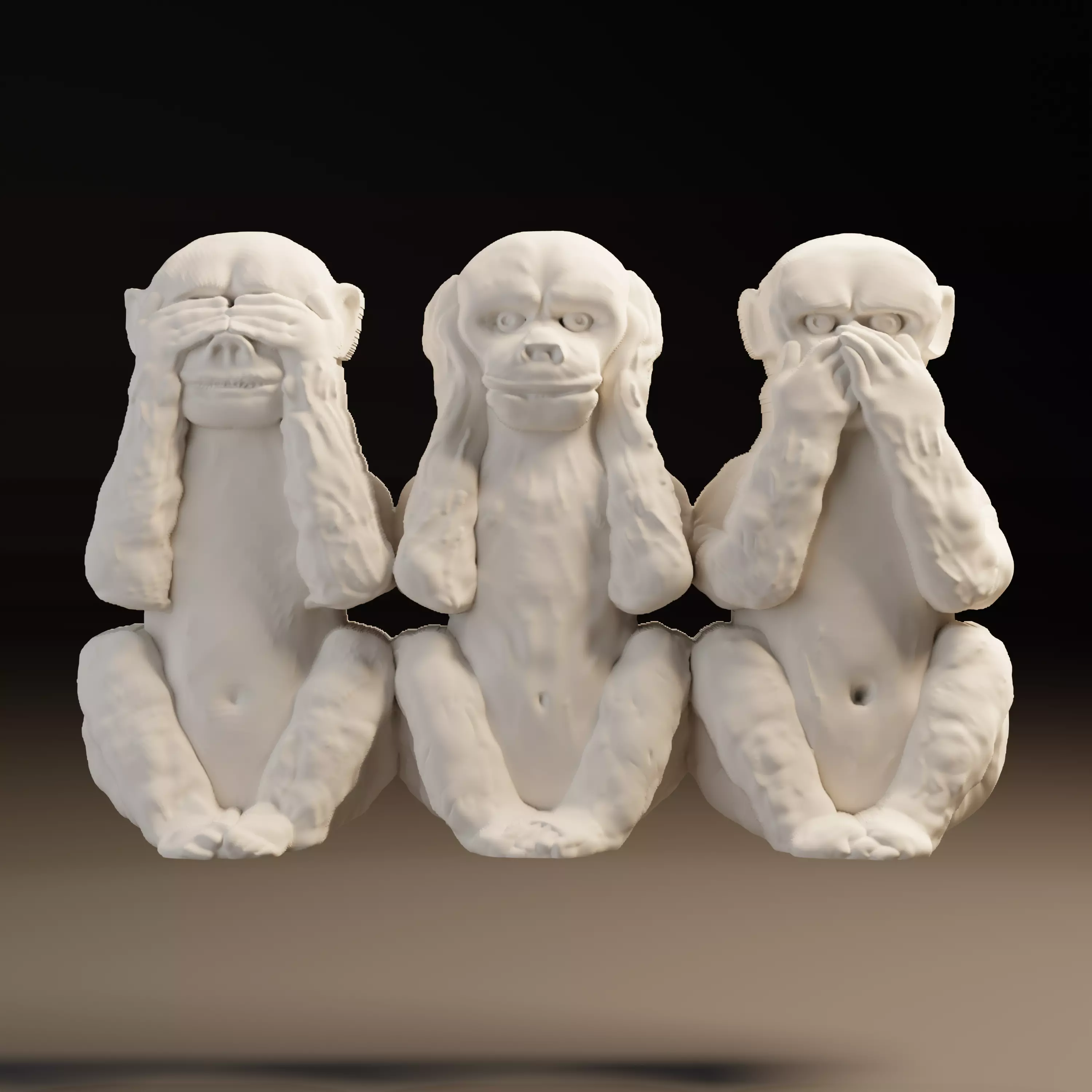 This model represents the famous See No Evil, Hear No Evil, Speak No Evil monkeys, symbolizing wisdom and moral philosophy. Perfect for decorative woodworking, wall art, furniture decoration, and unique interior design projects. Modeled in Blender and optimized for CNC machining to ensure clean details, smooth toolpaths, and efficient production.