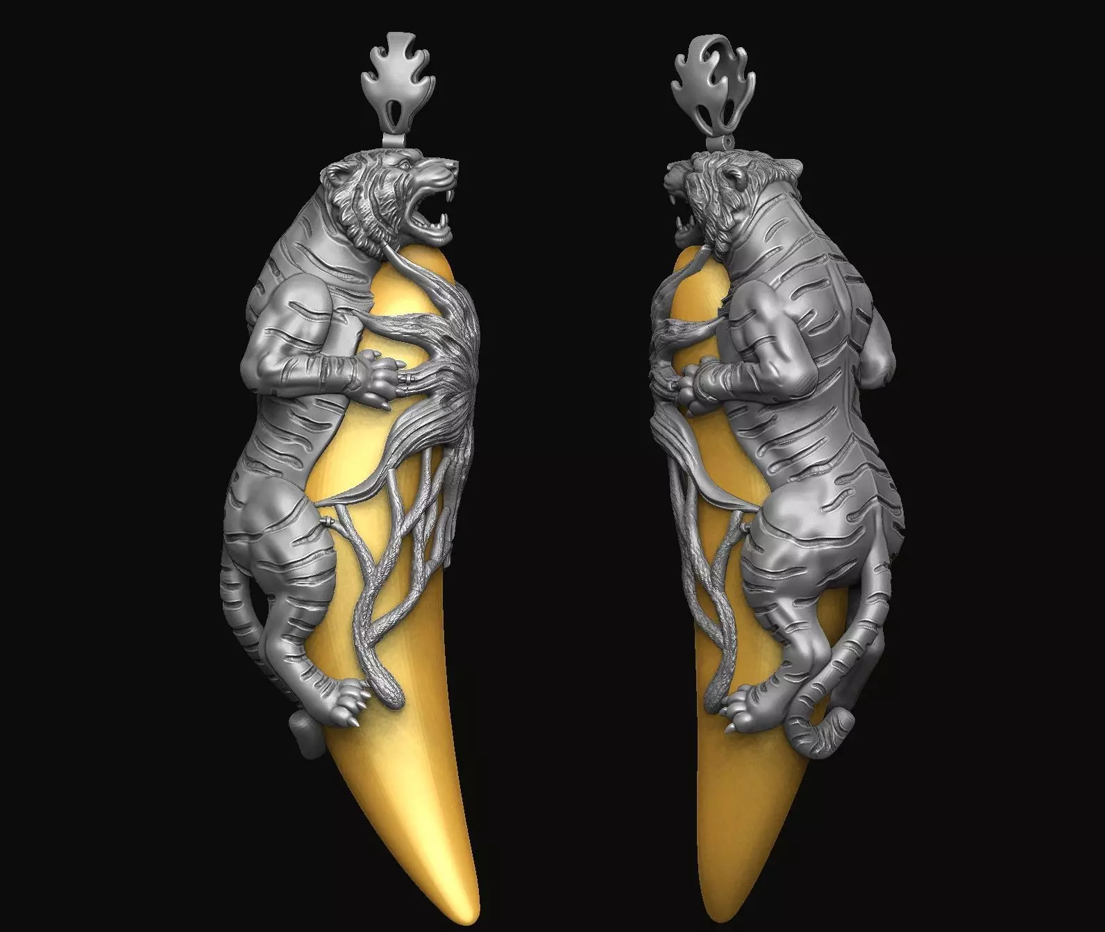 Tiger hugs fangs Pendant 3D print model