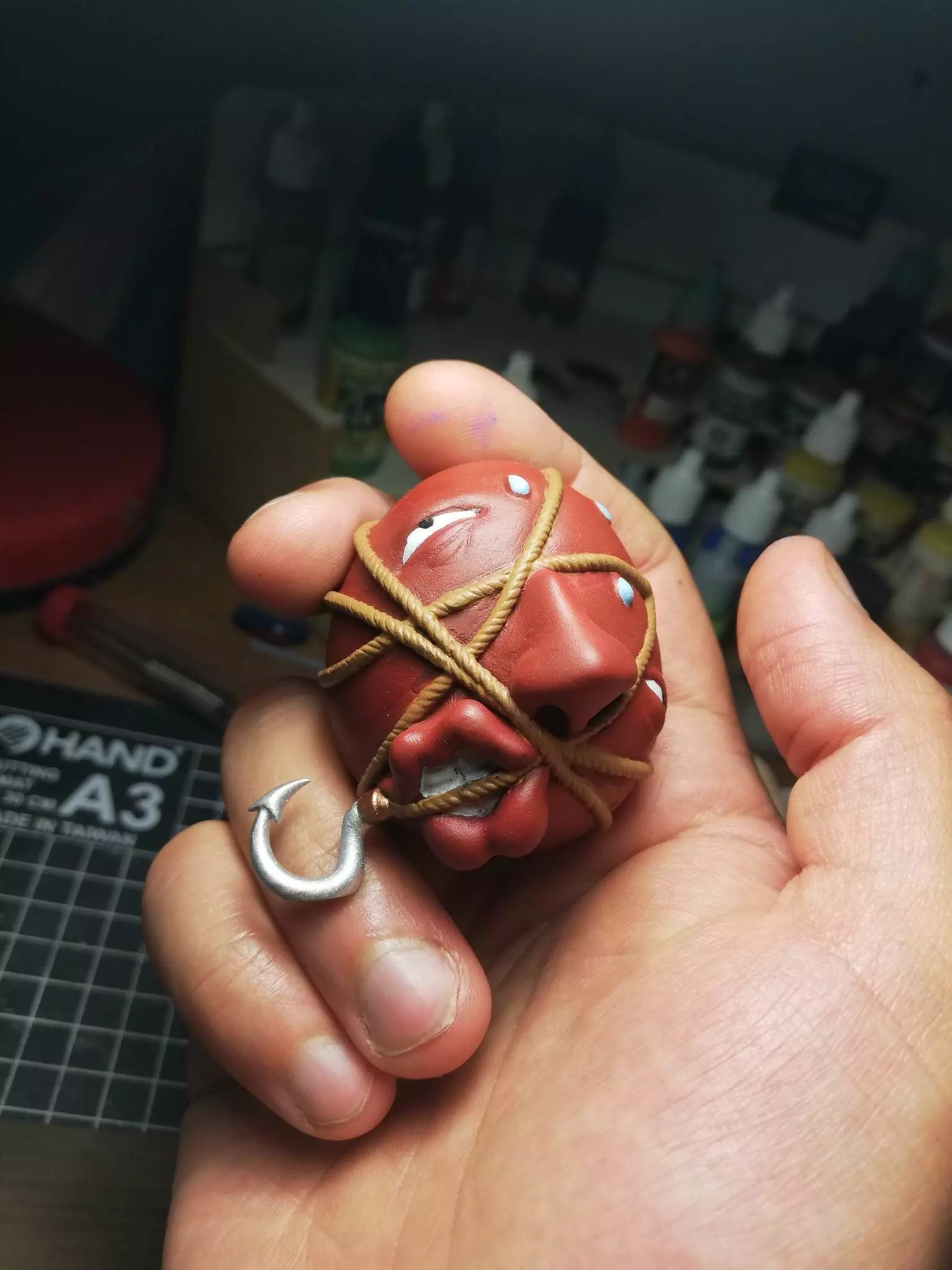 Hi guys!I leave you this exclusive and rare Behelit (Trapped!)Caught with a rope and a hook at the end!Stands easily on the surface :)Size: 70 mm I hope you enjoy this creation!