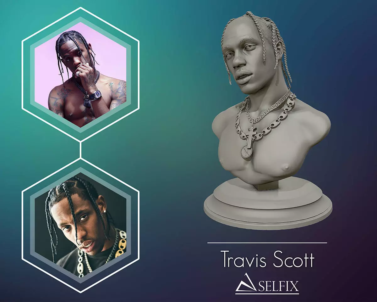 3D bust model of travis scott portrait in to diffrent pose. ready to 3D print in any size you want.
