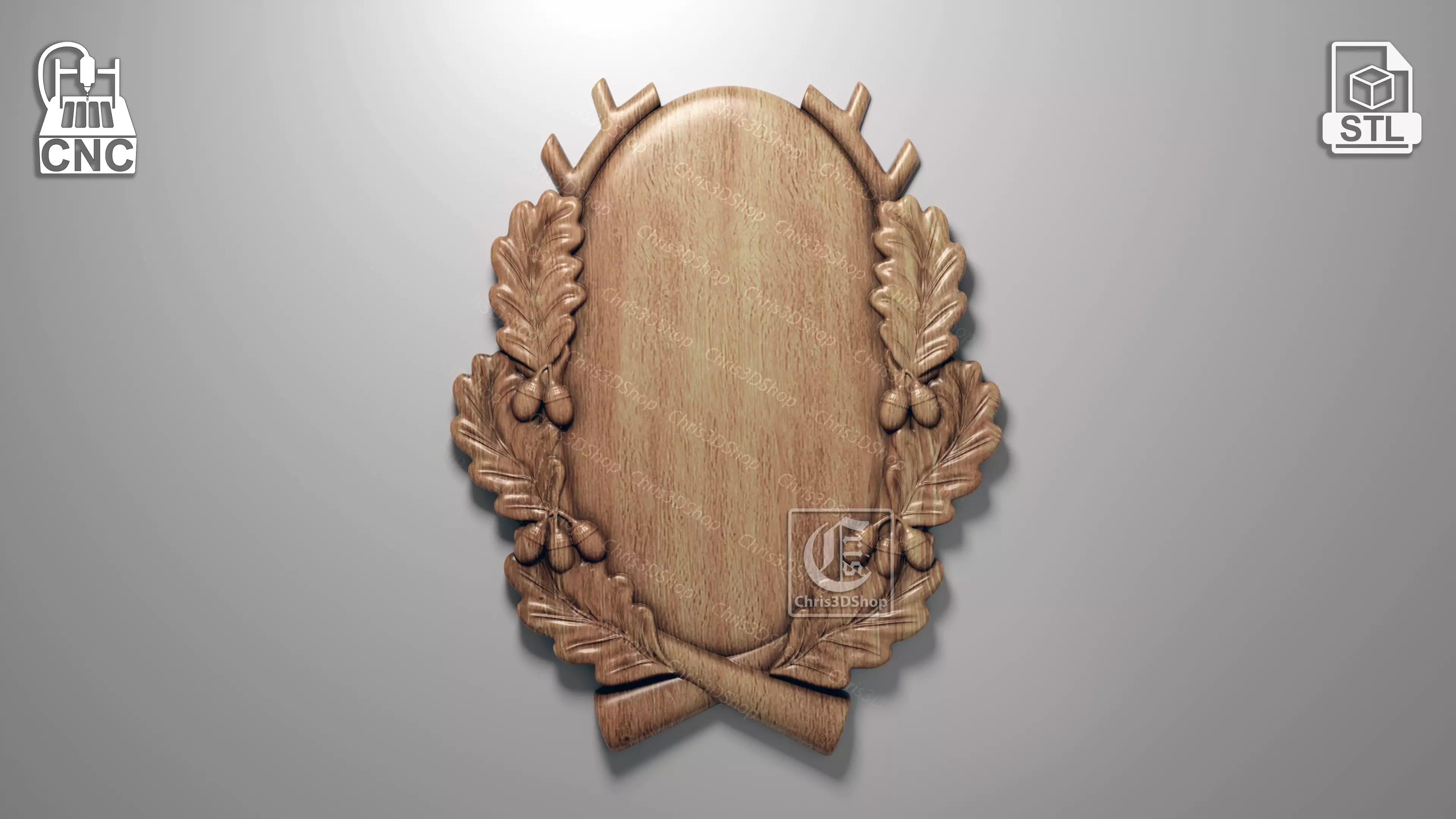 Trophy display shield - 3D STL files that can be used with Aspire, Vcarve, Carveco ,Artcam or any other software that allows you to import the Stl file format, to be carved from wood with a CNC Router.