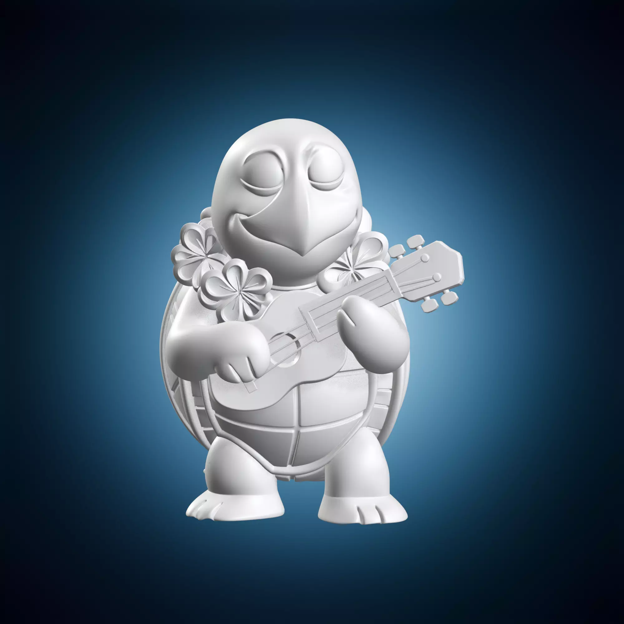 A whimsical and colorful 3D model of a turtle playing a ukulele while surrounded by flowers. The model is perfect for artists, designers, or anyone looking to add a touch of fun and playfulness to their projects. This model can be used in various contexts such as animation, video game development, or even product design. It features intricate details and textures that bring the scene to life.