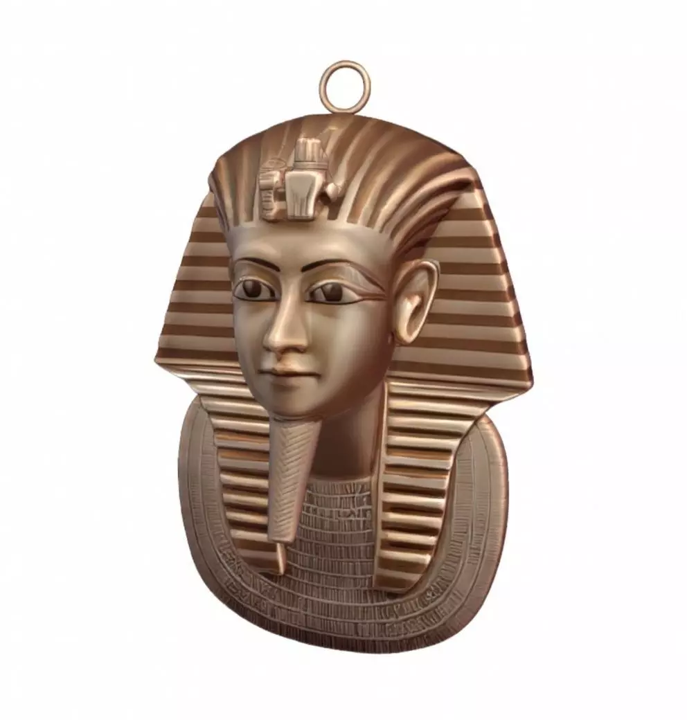 Bring the legendary elegance of Ancient Egypt to your collection with this high-detail Tutankhamun Pharaoh Pendant. This 3D model is masterfully sculpted to capture the iconic features of the Boy King, including the detailed Nemes headdress and royal beard.
