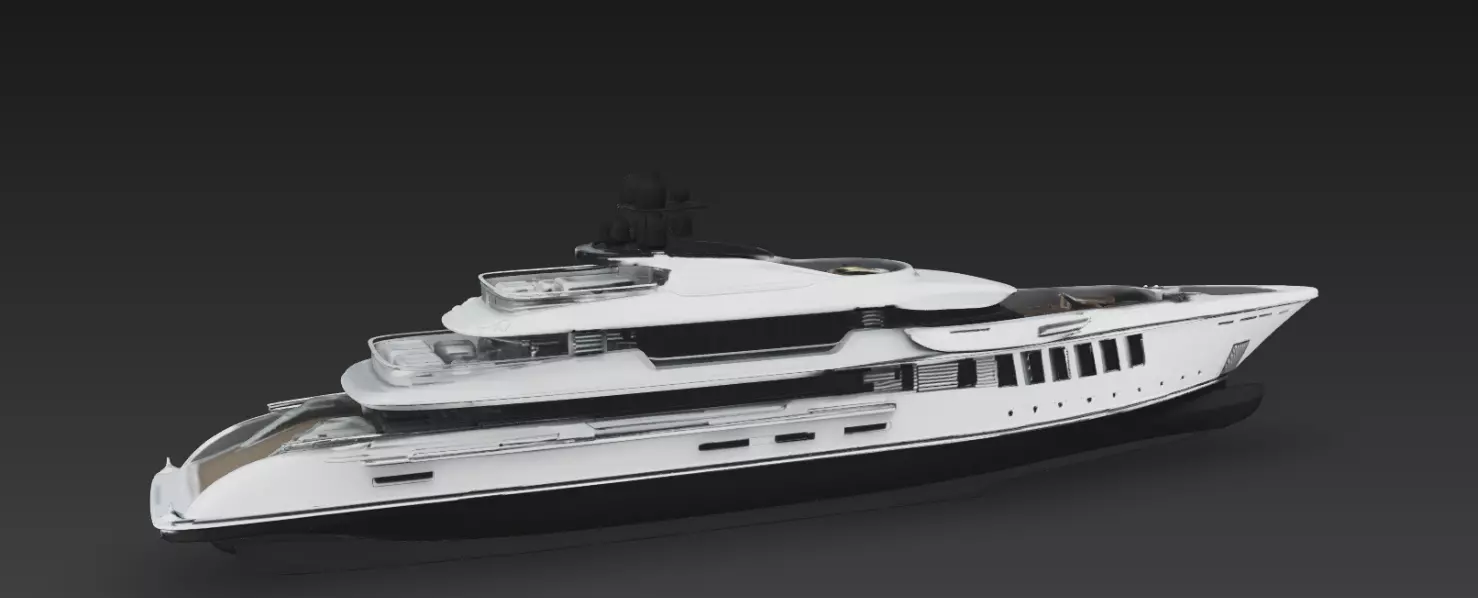 Ultra Luxury Mega Yacht Exterior is a high-detail modern super yacht model designed with an elegant multi-deck structure, long streamlined hull, and powerful contemporary silhouette. The layered architecture, extended bow deck, and wide panoramic side windows create a commanding and prestigious appearance.