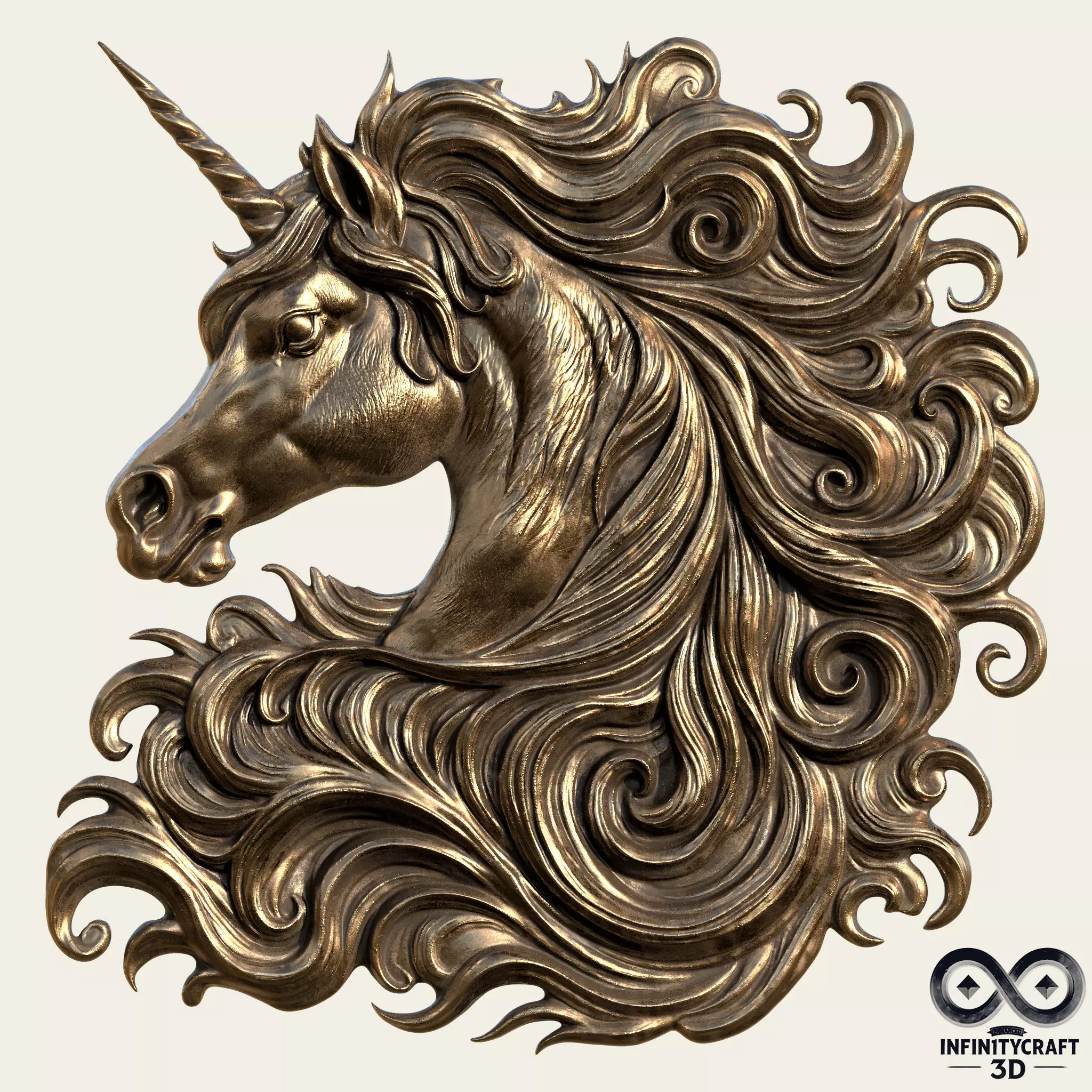 Unicorn Head Relief – For CNC & 3D PrintingA beautifully detailed relief of a unicorn head, perfect for fantasy lovers and decorative projects. Designed for high-quality results on both 3D printers and CNC machines, this piece adds a magical and elegant touch to any space – whether as a wall art, plaque, or custom decor.