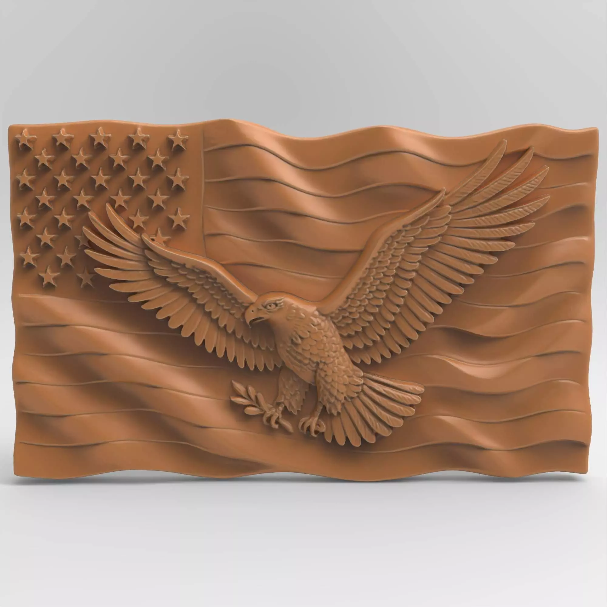 This high-relief STL model features a majestic American eagle in full flight across a waving U.S. flag. The eagle, carrying an olive branch, is sculpted in clean, bold geometry ideal for CNC carving or 3D printing. With over 150,000 mesh points, the design balances intricate feather and flag textures with manufacturable clarity. Perfect for patriotic gifts, military tributes, and wall art.
