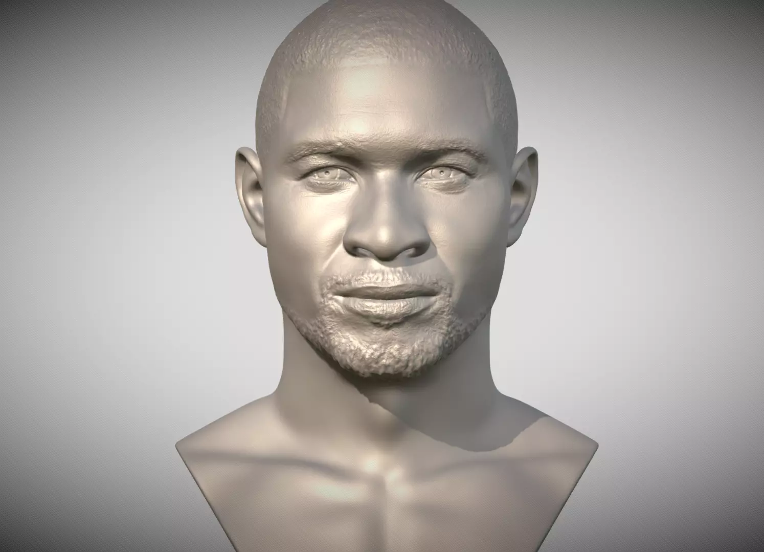 Here is Usher bust ready for 3D printing. The model current size is 50 mm height, but you are free to scale it. The product contains obj and stl. The model was created in ZBrush.