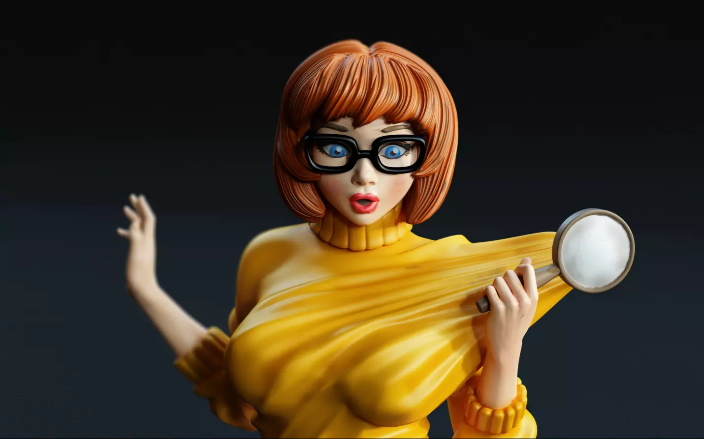 Velma will includes : one stl model like as the picture, and the second option will be NFSW, it will also include the characters of small dog , one ghost and a tall guy. also include a base .