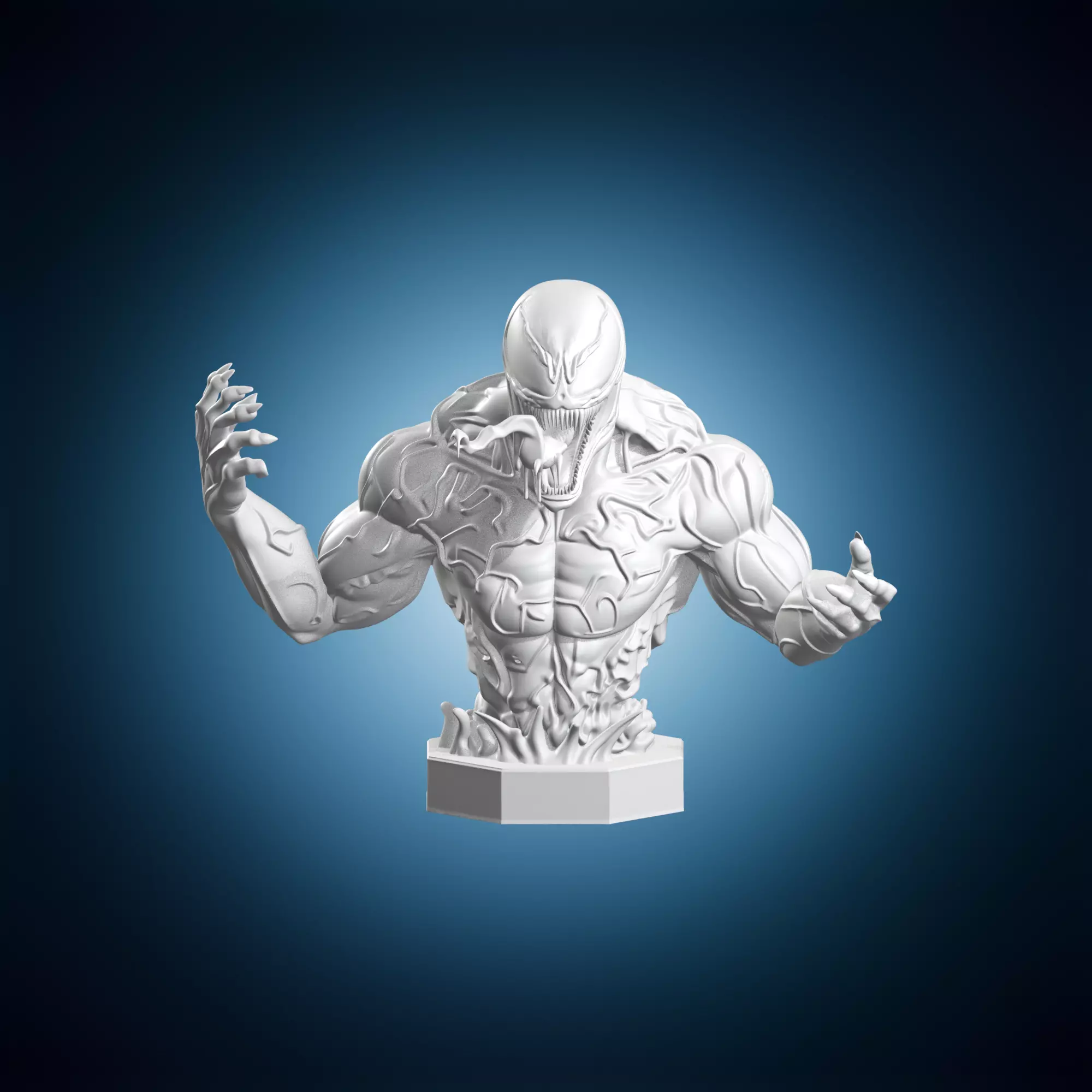 A detailed sculpted model of Venom from the Marvel Comics universe, ideal for comic book collectors or fans of superhero art. This bust sculpture is crafted with precision and attention to detail, capturing the iconic character's aggressive appearance. The model can be used as a display piece or incorporated into a larger diorama. With its unique design and vibrant color scheme, this Venom bust sculpture adds a touch of edginess to any room. Perfect for fans of comic book art, sci-fi, and superheroes.