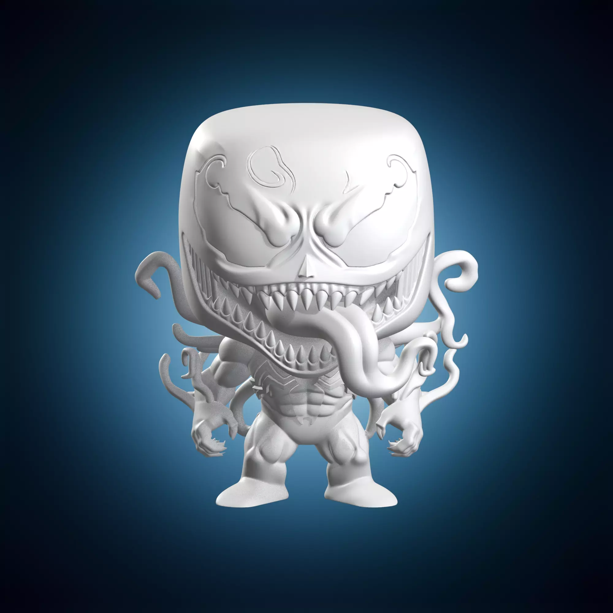 A detailed, highly stylized 3D model of a pop vinyl figure inspired by Venom, suitable for use in various applications such as art, animation, and video games. The model features intricate details and textures that accurately represent the character's iconic design. It is designed to be used at any scale, from small collectible figurines to large-scale decorative pieces. This 3D model can be easily modified or customized to suit specific needs. Use it for artistic purposes, such as modeling, animation, or visual effects.