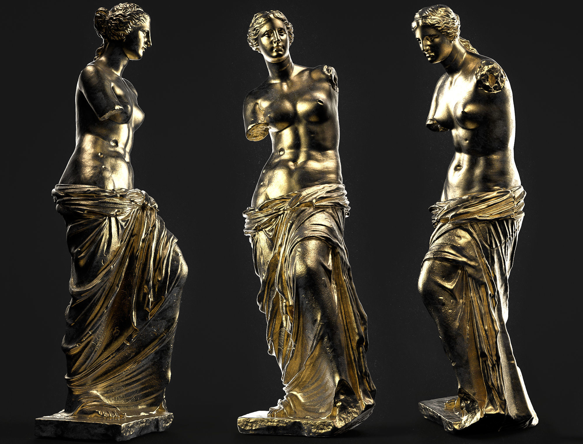 statue sculptures Louvre a classical sculpture of Aphrodite dated to circa 100 bc . It was discovered on the Greek island of Melos in 1820 and is now in the Louvre in Paris.Created sometime between 130 and 100 BC, the statue is believed to depict Aphrodite, the Greek goddess of love and beauty. However, some scholars claim it is the sea-goddess Amphitrite, venerated on Milos.[2] It is a marble sculpture, slightly larger than life size at 203 cm (6 ft 8 in) high. Part of an arm and the original plinth were lost following the statue's discovery. It is currently on permanent display at the Louvre Museum in Paris. The statue is named after Aphrodite's Roman name, Venus, and the Greek island of Milos, where it was discovered.