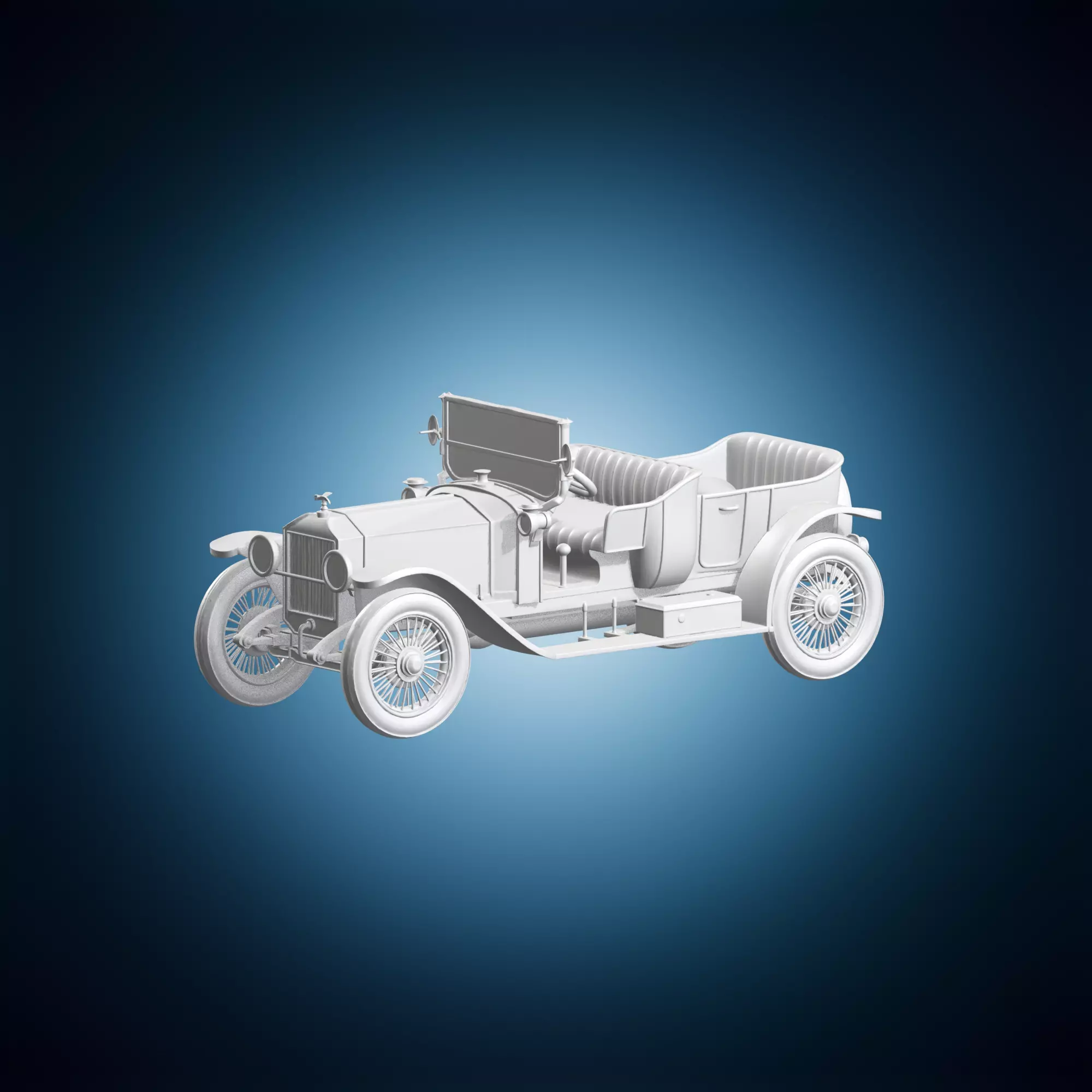 A detailed 3D model of a classic vintage car with an open-top design, suitable for artistic and decorative purposes. The model is optimized for smooth rendering and has a realistic texture. It can be used in various projects such as product renderings, architectural visualizations, or artistic compositions. The model's simplicity makes it easy to customize and integrate into other 3D models. It is compatible with most popular 3D modeling software and platforms.