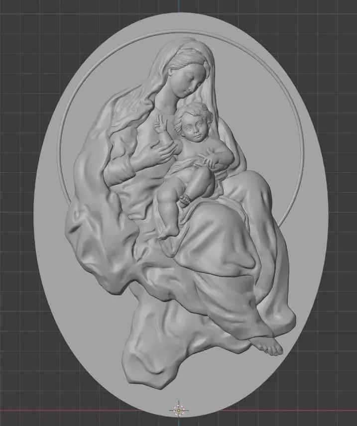 Specially designed for a 3D CNC Router Carving Machine and 3D Printing this is the highly detailed bas relief of the Virgin and Baby Jesus. In real units the relief is 148.76 mm wide by 204.36 mm high.