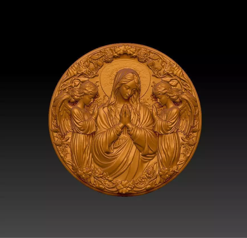 High-quality 3D bas-relief model of Virgin Mary with two angels, designed for CNC milling, engraving, or 3D printing.This detailed round relief is suitable for wall art, jewelry mold, medallion, or decorative panel production.The model has clean topology, optimized mesh, and is ready for both manufacturing and rendering purposes.