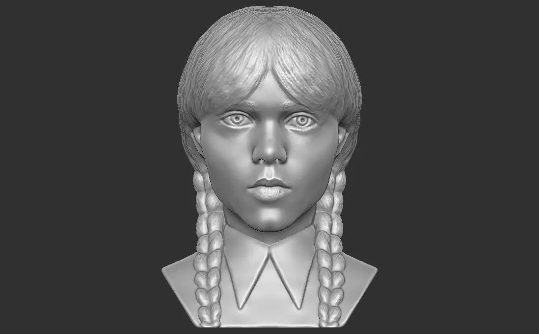Here is Wednesday Addams (Jenna Ortega) bust ready for 3D printing. The model current size is 50 mm height, but you are free to scale it. The product contains obj and stl. The model was created in ZBrush.