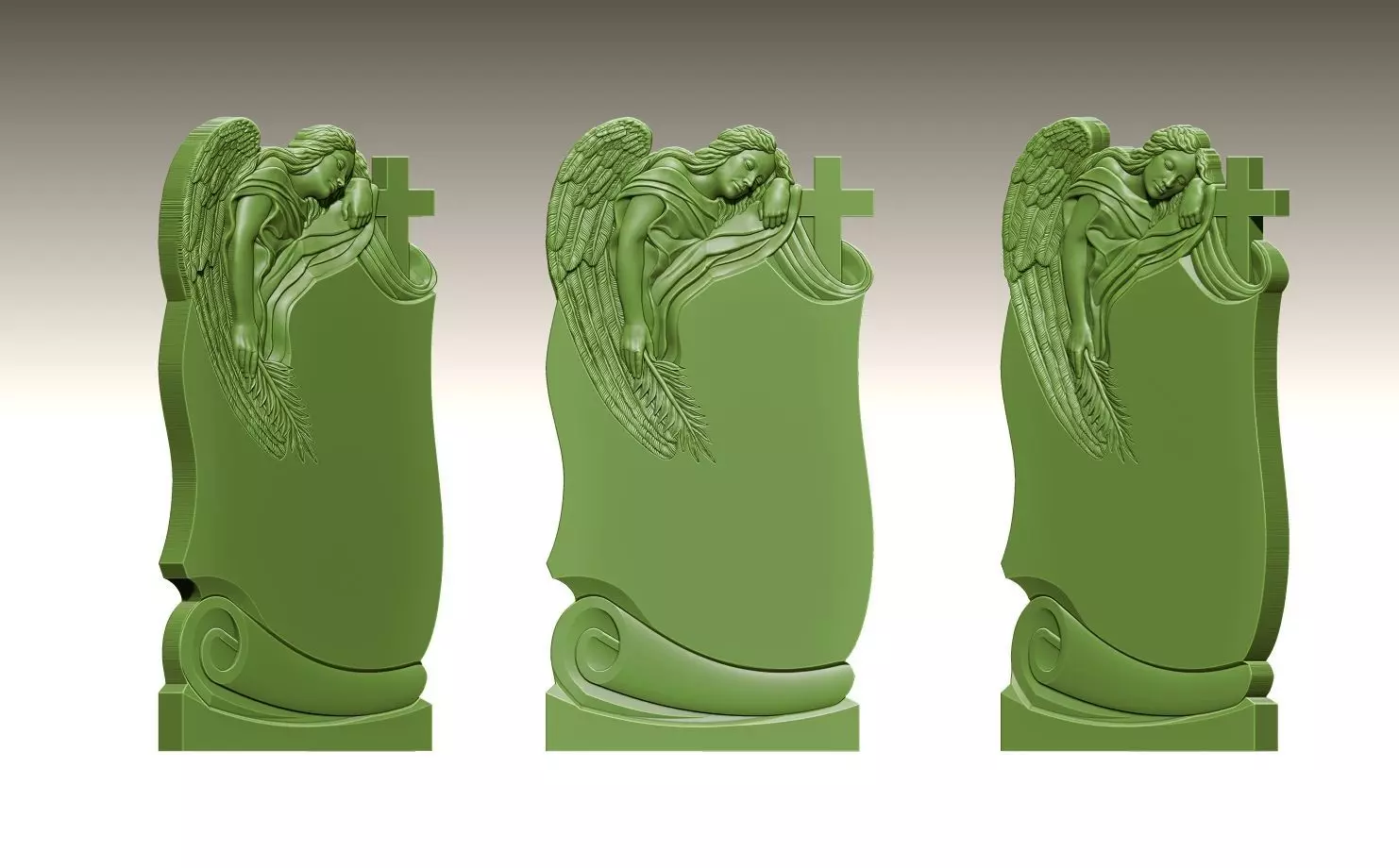 A finely detailed 3D relief of a sorrowful angel leaning over a cross, designed as a memorial or tombstone ornament. The angel’s graceful wings and peaceful posture evoke a sense of calm and eternal rest.High-resolution sculpt with smooth surfaces suitable for CNC or resin 3D printing