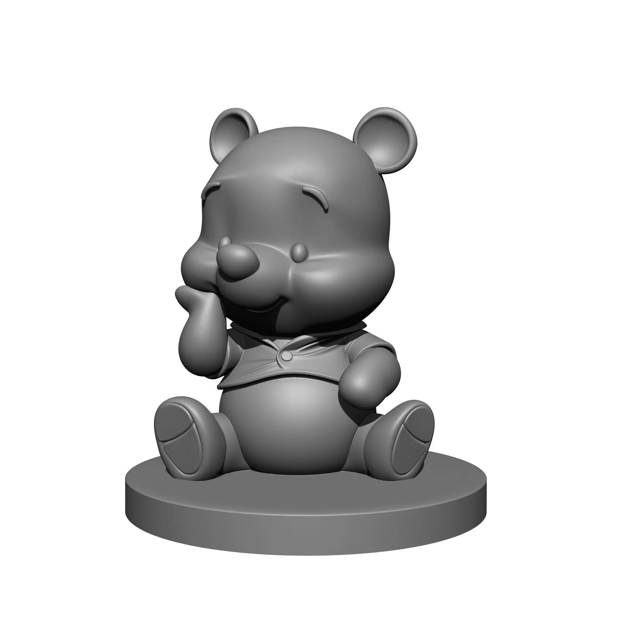 Design ConceptThis 3D model is designed with the concept of capturing the adorable and playful nature of a bear character. It's sculpted in a sitting pose, showcasing a cute and relaxed demeanor, making it perfect for fans and collectors.
