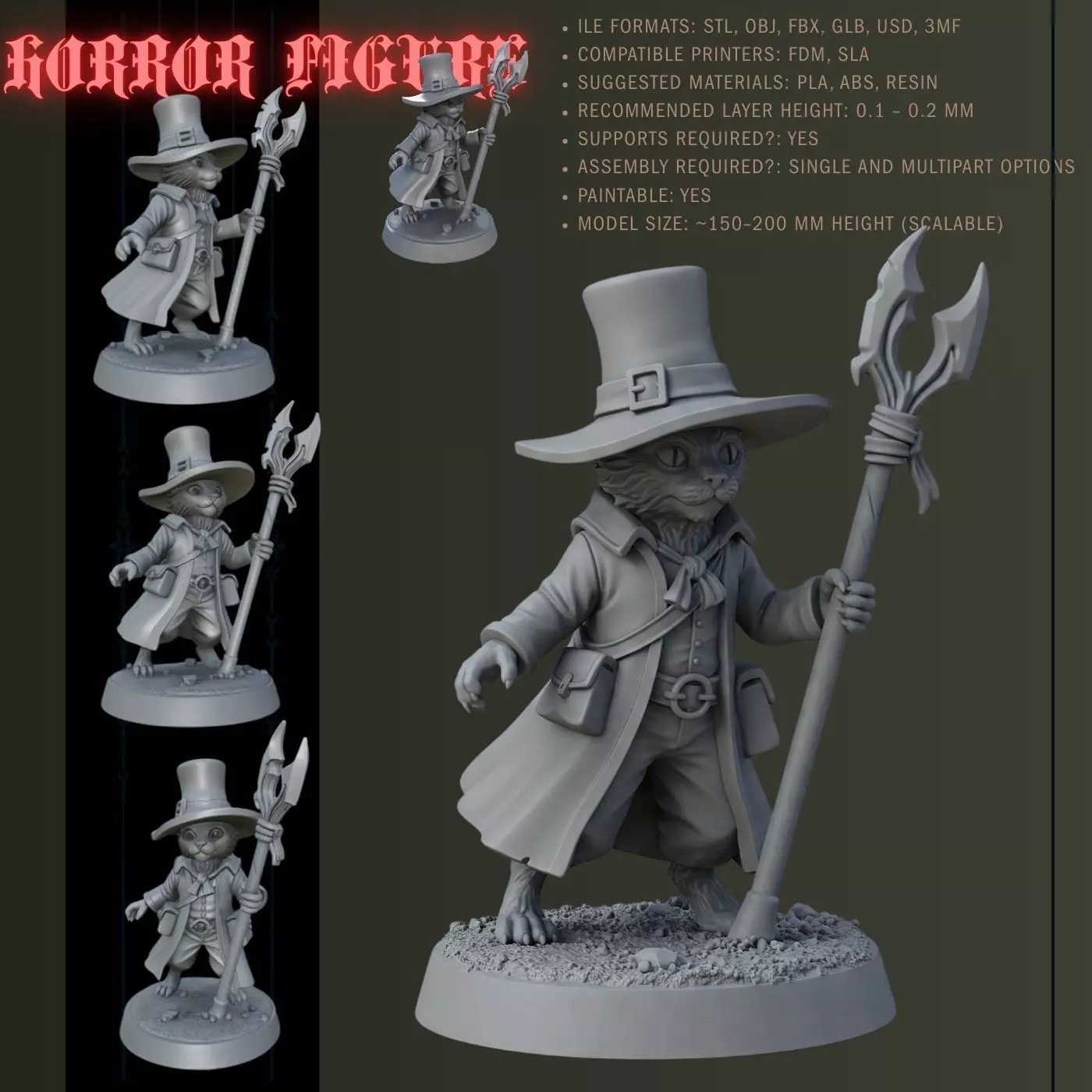 Description:Add a touch of charm and wisdom to your collection with this 3D printable anthropomorphic cat wizard figure! Featuring human-like posture, detailed wizard attire, a stylish hat, and a magical staff, this model is a perfect addition for tabletop RPGs, fantasy figure collections, or unique decorative setups.