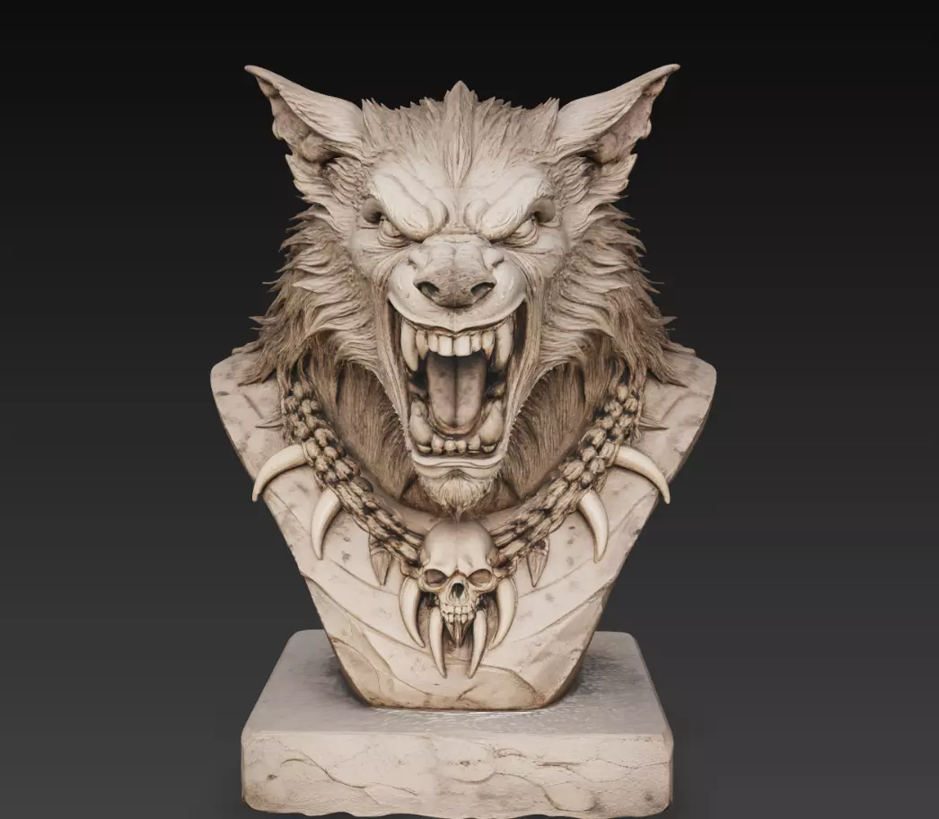 • Fantasy creature sculptures• 3D printed busts• Animal-themed art• Game assets• Cinematic rendering• Tribal and savage themes• Collectible statues• Concept art