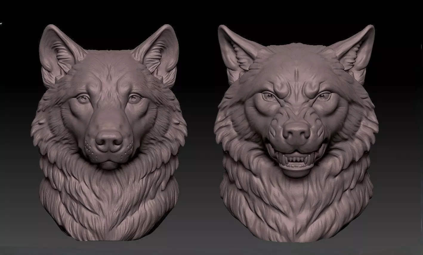 Данная работа предназначена для использования в различных сферах — цифровое искусство, 3D-моделирование, дизайн, визуальные проекты, печать, тату-эскизы, игровые и художественные концепты.В композиции представлены два волка, выполненные в реалистичном стиле: один в спокойном, уравновешенном состоянии, второй — в ярко выраженном агрессивном и напряжённом настроении.Оба образа передают контраст эмоций и характеров, подчёркивая силу, дикость и внутреннюю природу хищника. Детальная проработка анатомии, формы головы и шерсти делает работу универсальной и выразительной для широкого спектра визуальных задач.