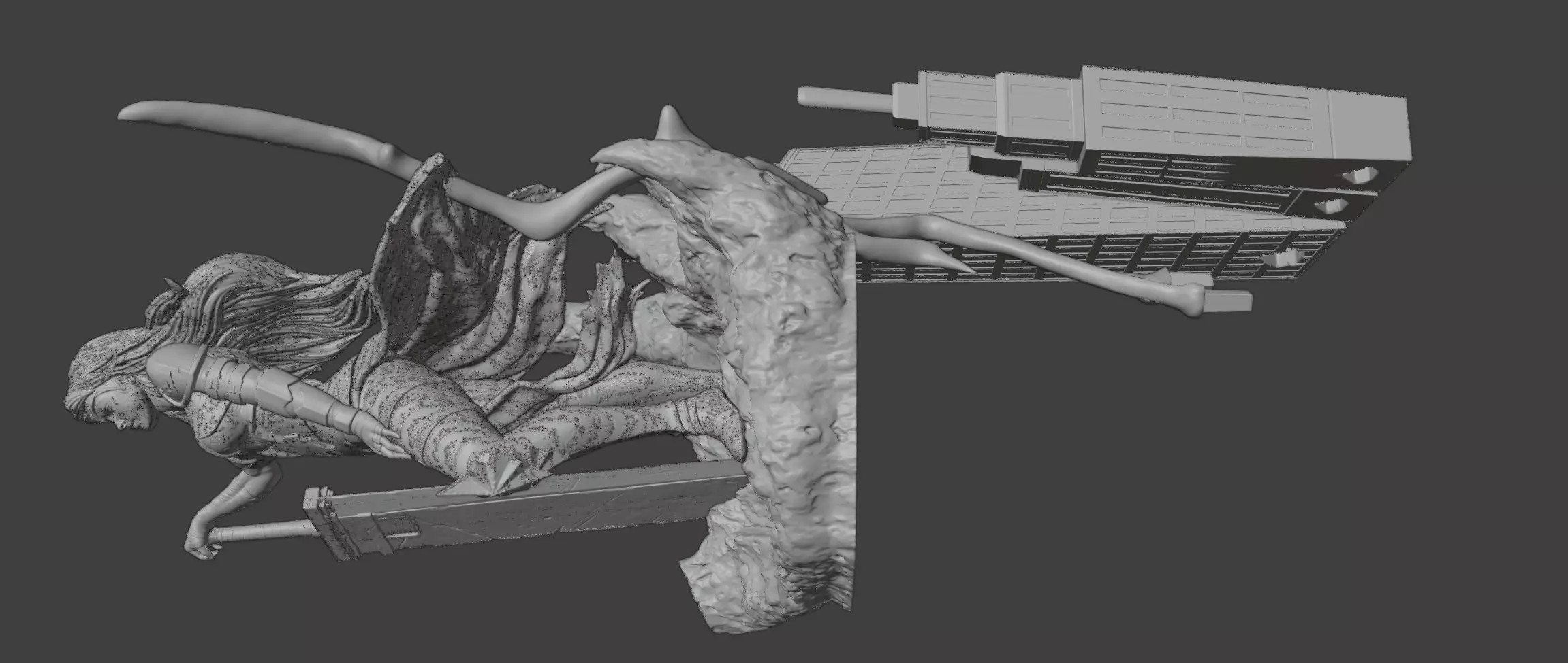 Highly detailed sculpt with flowing hair, textured armor, and heroic stance