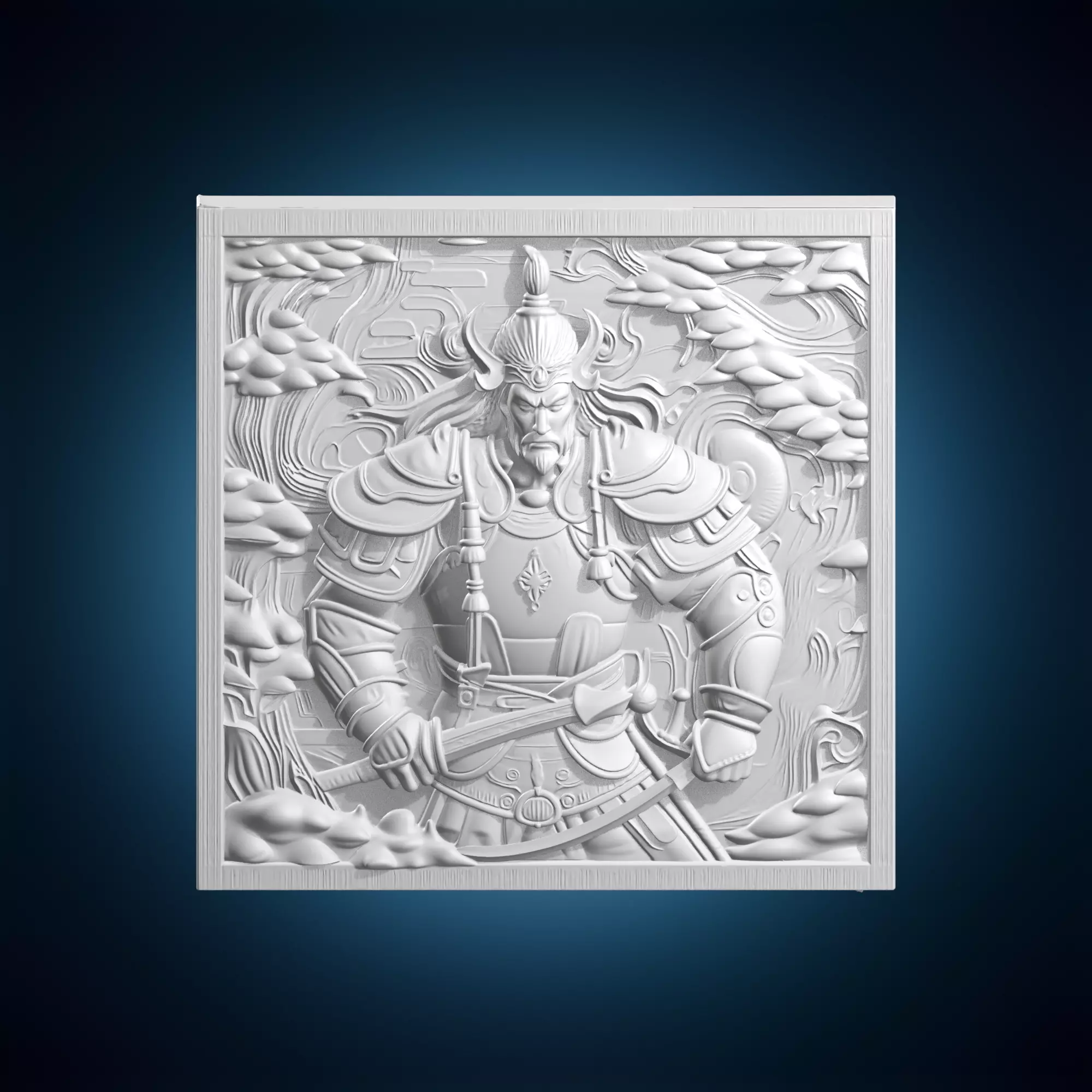 A beautiful piece of art crafted from wood, depicting a samurai warrior in a relief sculpture style. The model features intricate details and textures, giving it a realistic look. It is made from wood materials and has a serene expression on its face. The model can be used as a decorative piece or as a reference for artists and designers. Wood carved sculptures are a popular form of art that showcases the skill of the craftsman. This relief sculpture is a stunning example of Japanese art, inspired by the samurai culture.
