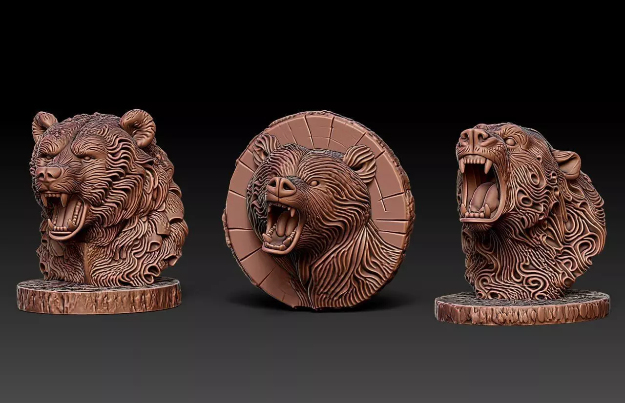 Wood Carving Bear Statue M80 3D print model