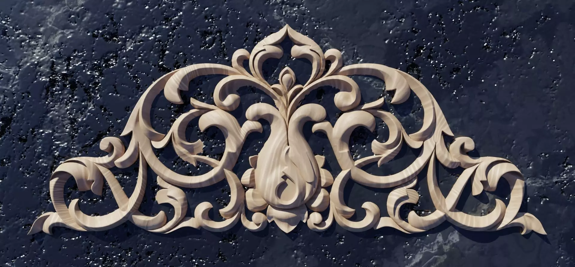 A piece of wooden ornament in highpoly STL file format ready for machining to be carved.