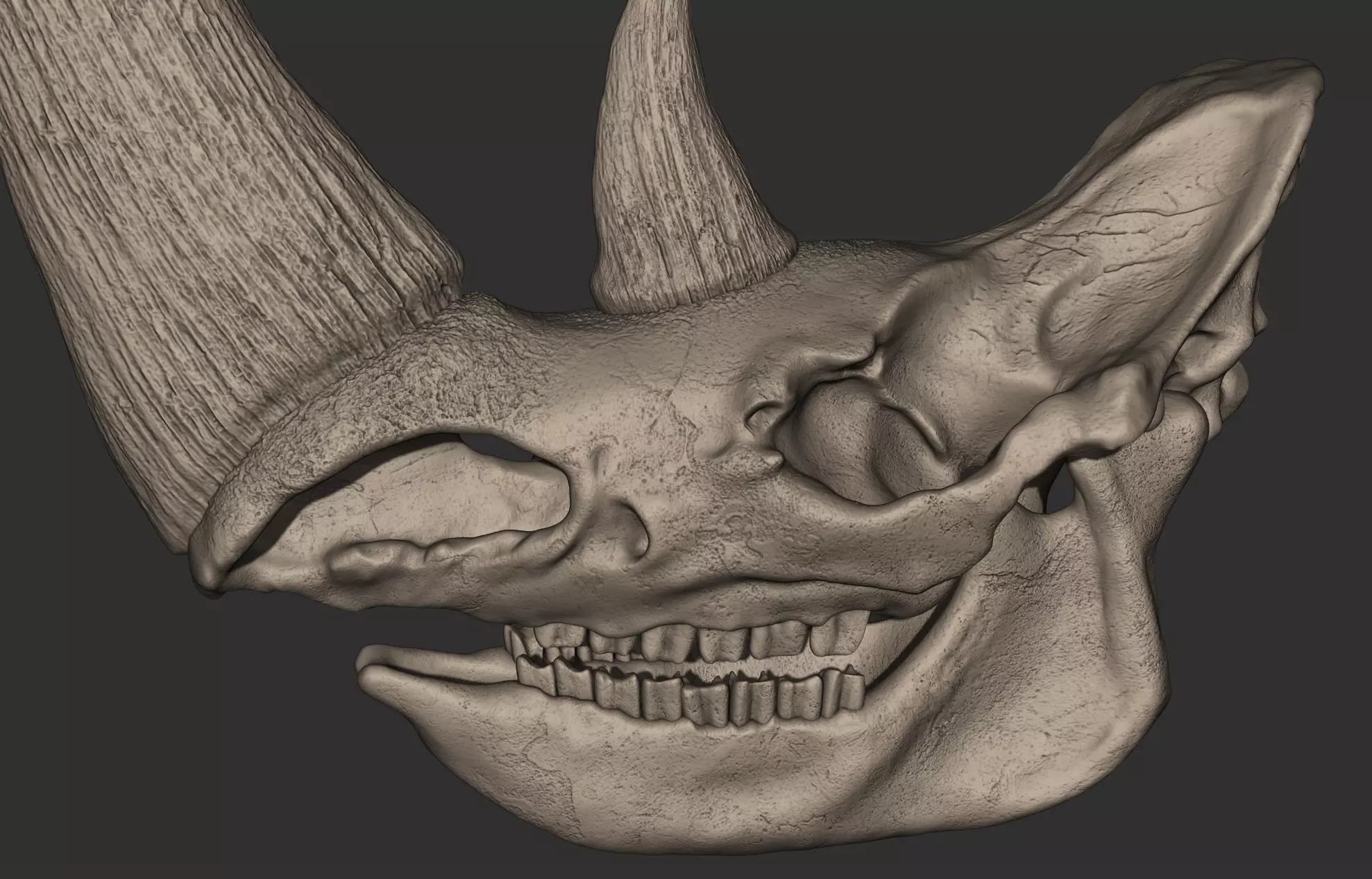 This is a life size 3d digital model skull of a Woolly Rhinoceros. OBJ, ZTL, PLY, FBX and STL files. parts is seperated in Fbx format