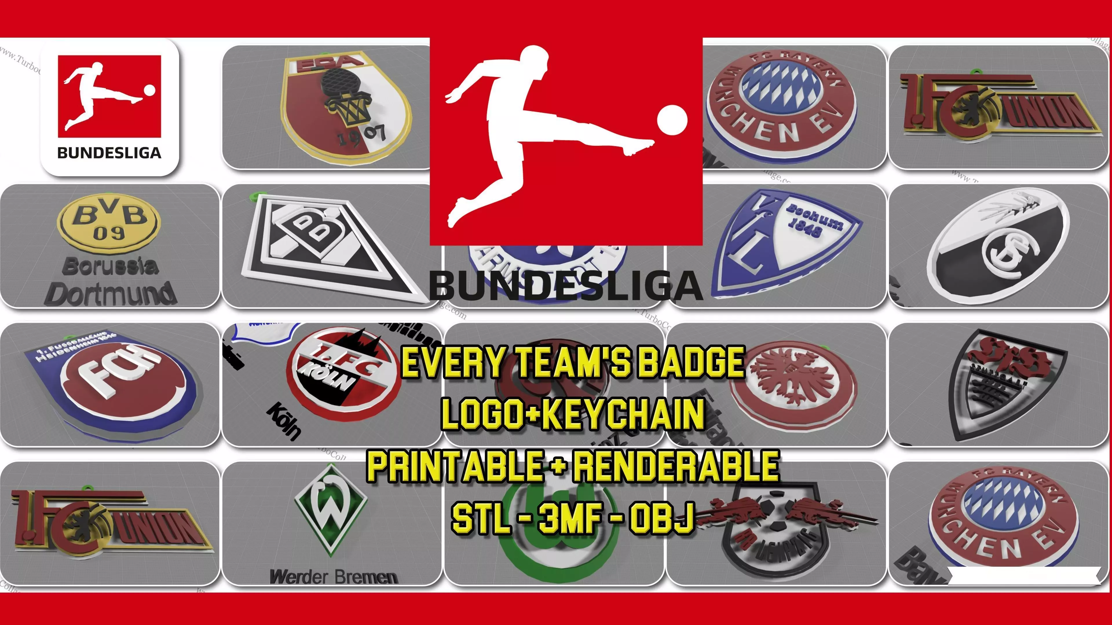 • Deutsche Fußball Liga (DFL) All Teams Keychains Color printable and renderable• Multicolor 3D printable & render-ready• High-quality pack with all team crests• Optimized for multicolor 3D printing and rendering.• Perfect for keychains, fan merch, and collectible sets.