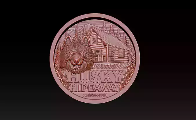 Husky Hideaway 2.5D Bas Relief – STL | OBJ | ZTL – CNC, 3D Print, Laser Engraving File